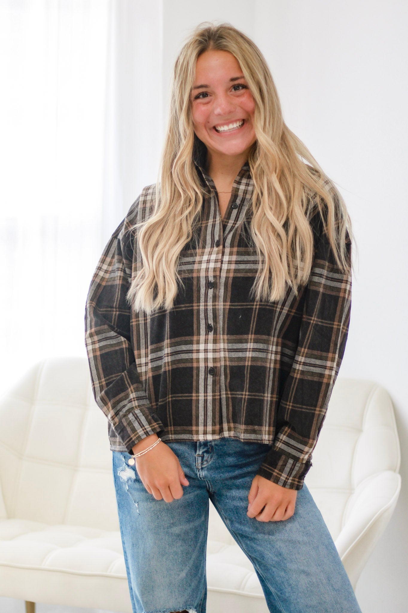 Experience comfort and style with the Flannel Fun in Black. This super soft flannel button-up offers a true-to-size fit and versatile wear—perfect for layering open or buttoned up. Its cozy fabric makes it an essential piece for everyday warmth and effortless fashion.