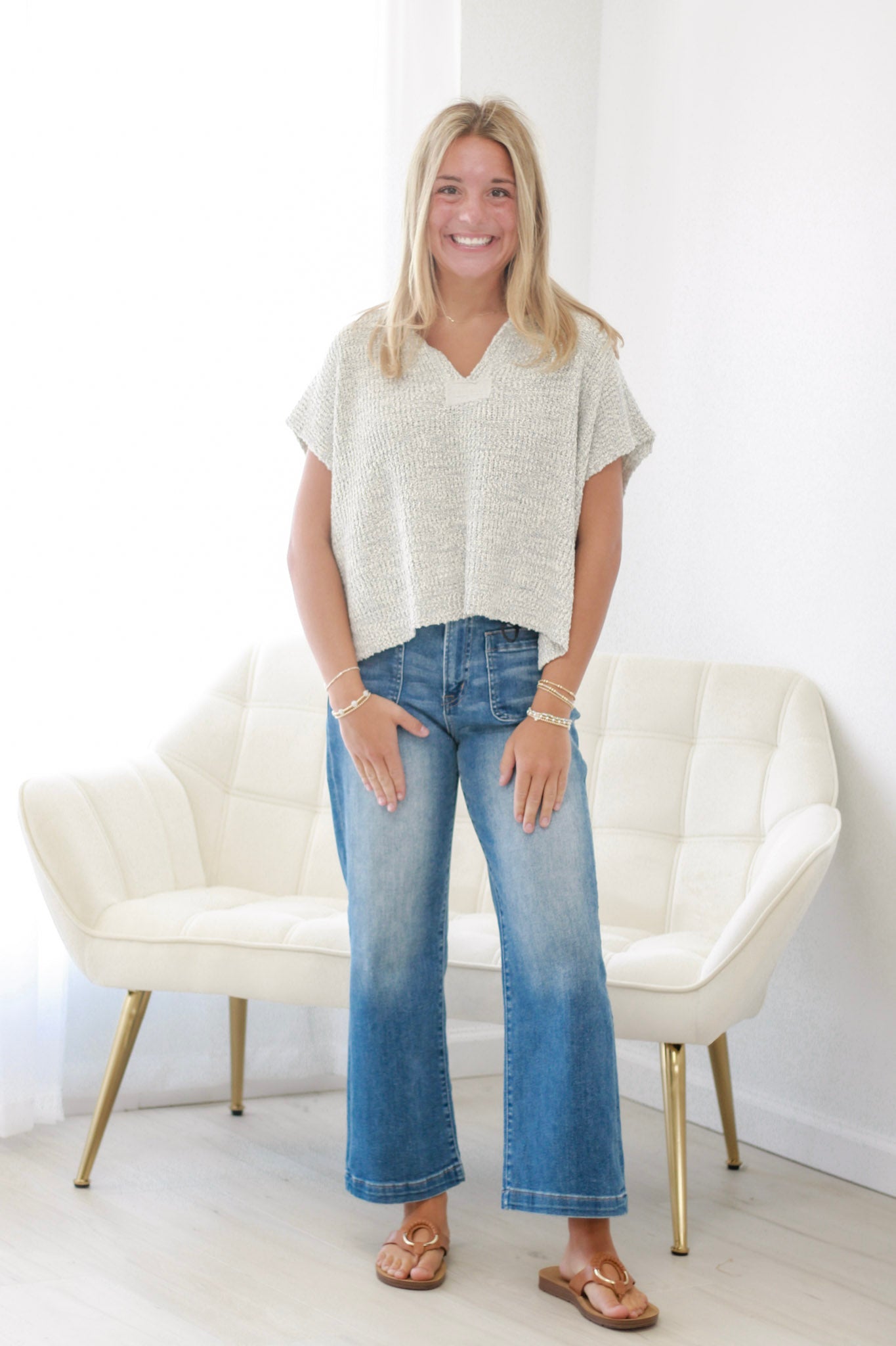 The Sunlit Stroll Split-Neck Top features a relaxed, loose fit with a stylish back patch and rolled split-neck design. Side slits enhance breathability and ease of movement, making it an ideal choice for warm weather. This top combines comfort and subtle detailing to keep you cool and effortlessly chic on hot days.