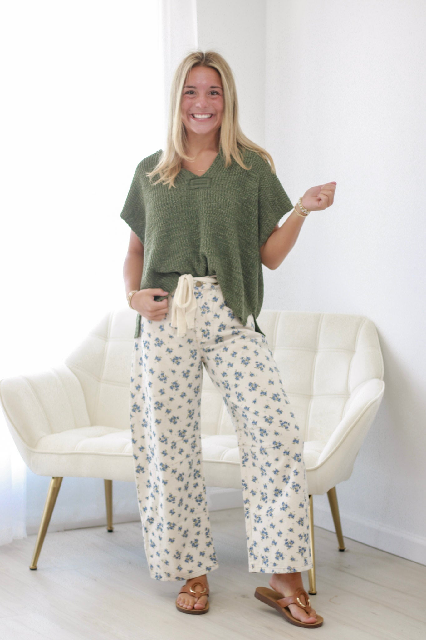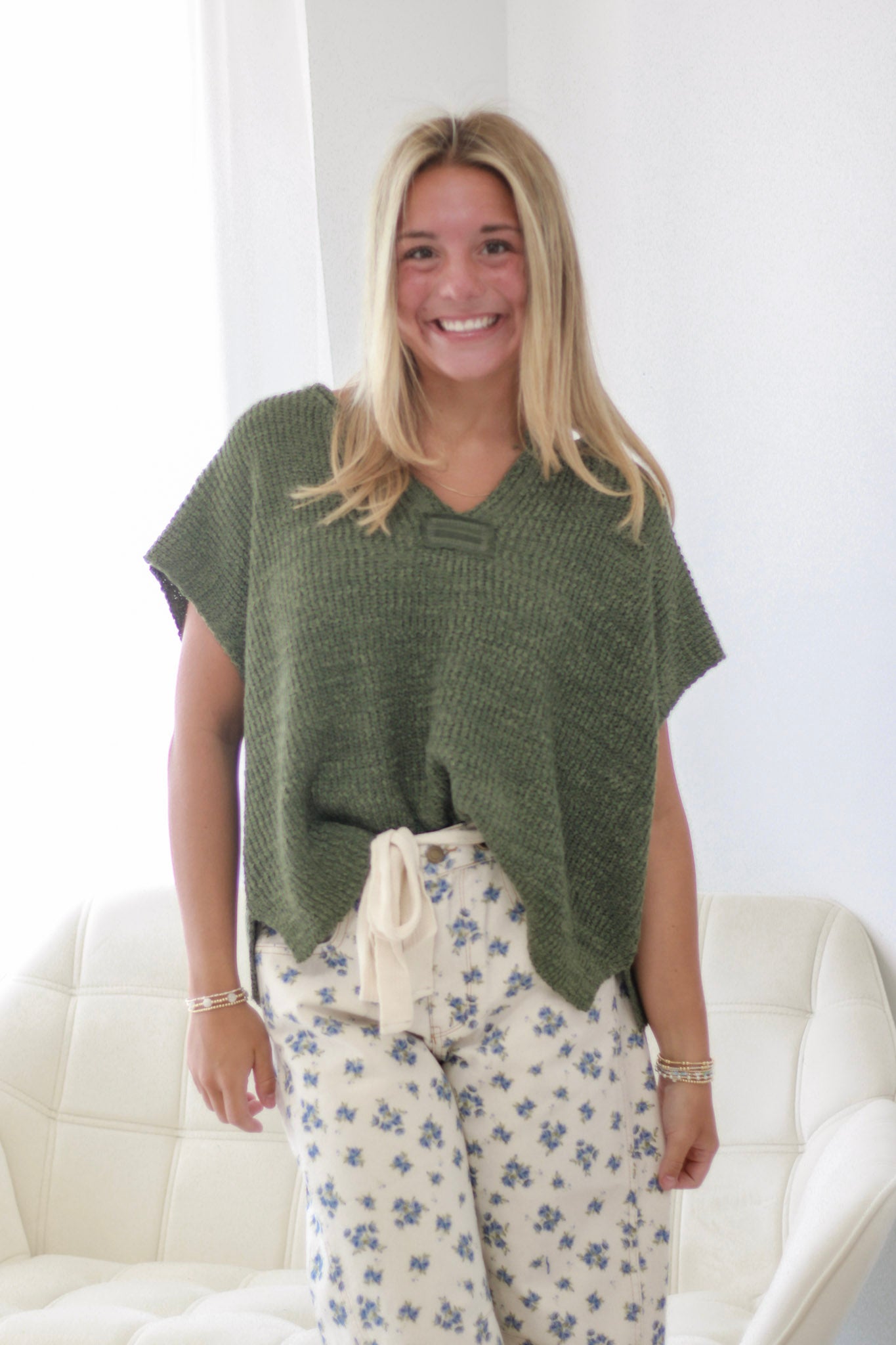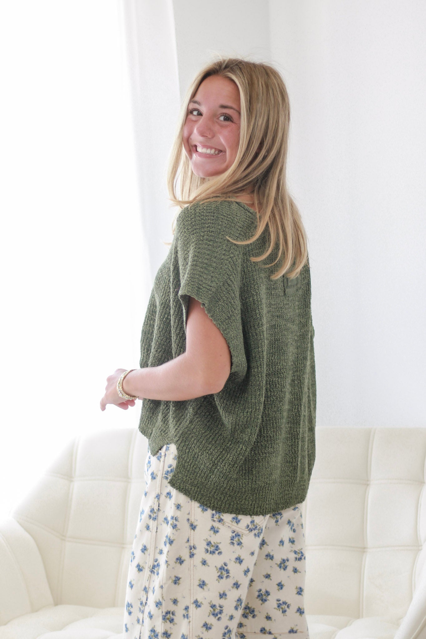 Sunlit Stroll Split-Neck Top in Light Olive