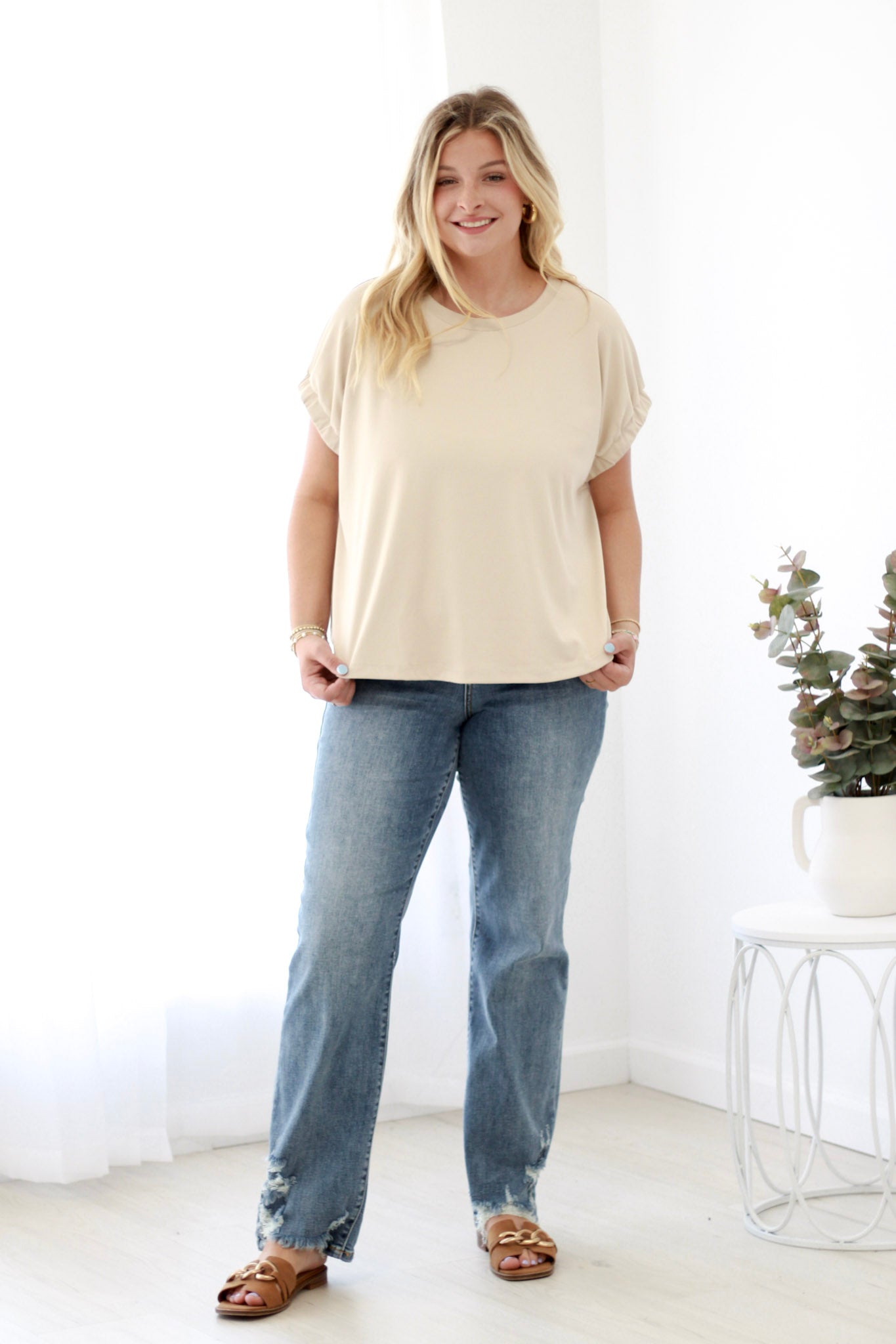 Solid pullover jersey knit top featuring elasticated sleeve openingsUnlinedKnitNon-sheerLightweight