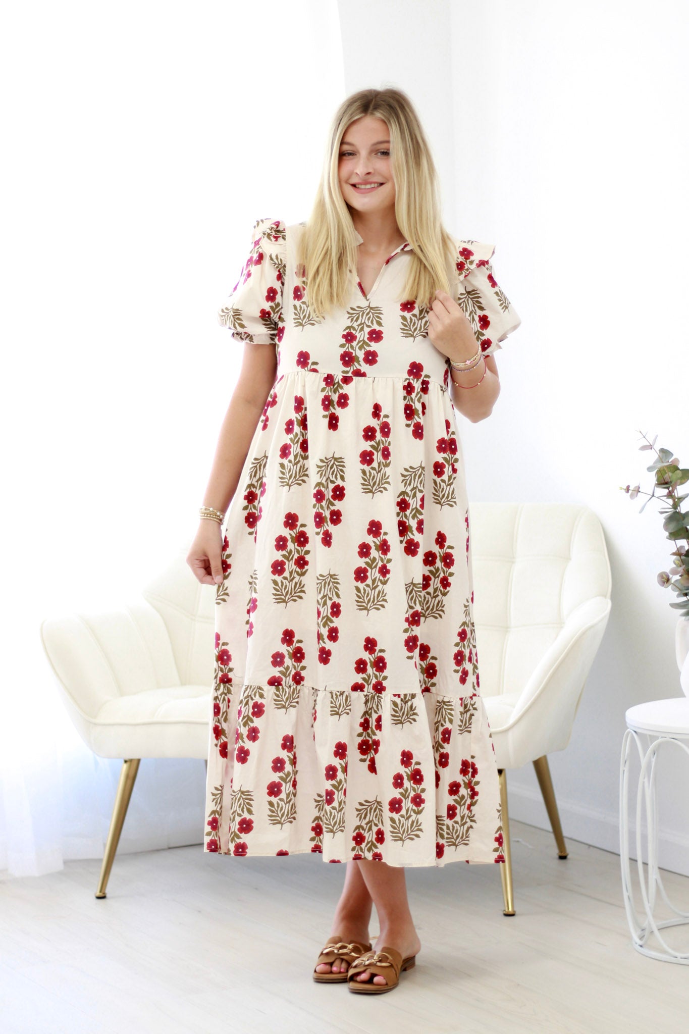 This floral midi dress features a trending print that elevates your spring and summer wardrobe. Crafted with great quality materials, it offers a comfortable true-to-size fit. Perfect for effortless style that lasts all day.