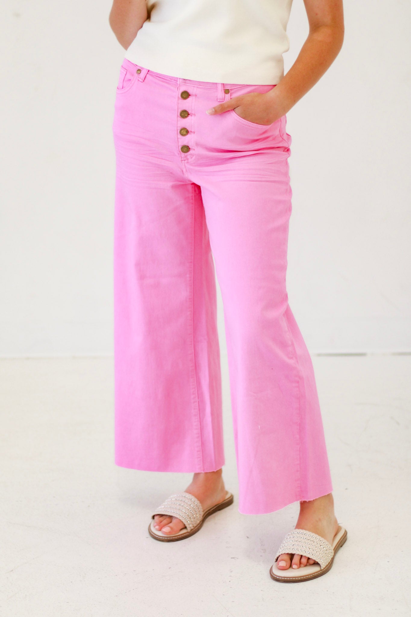 Downtown Vibes Wide Leg Pants in Barbie Pink