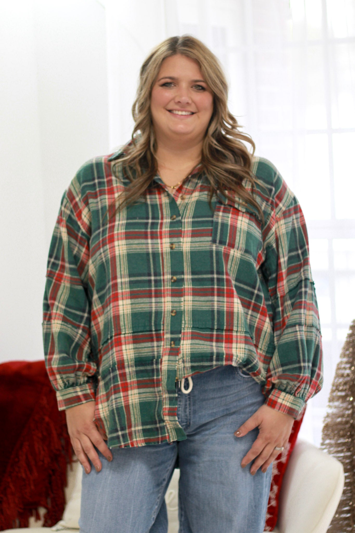 WASHED PLAID SHIRT TUNIC