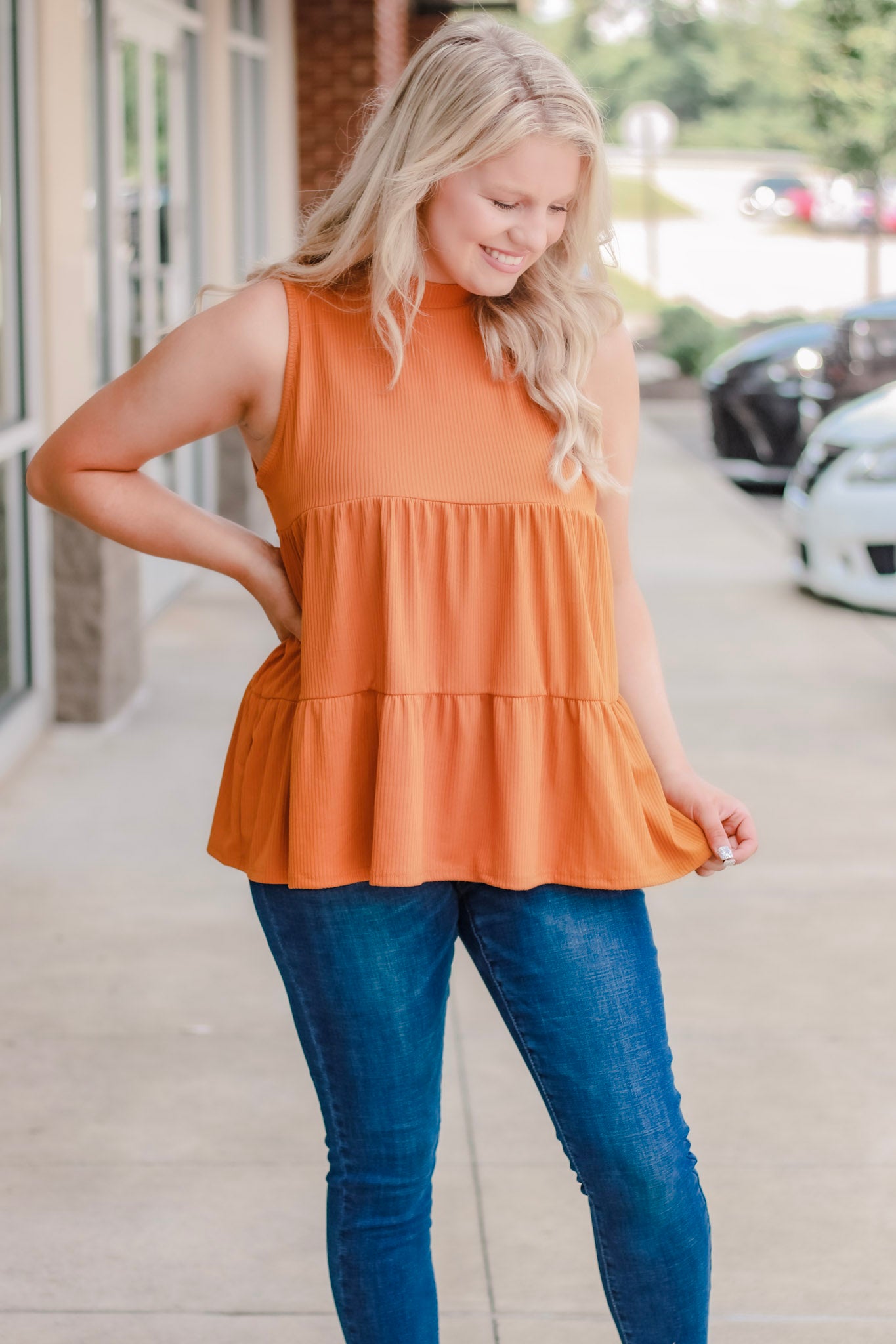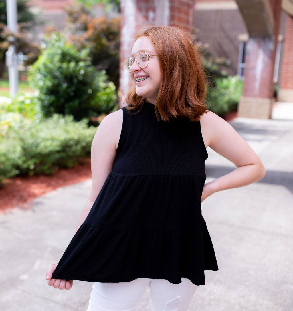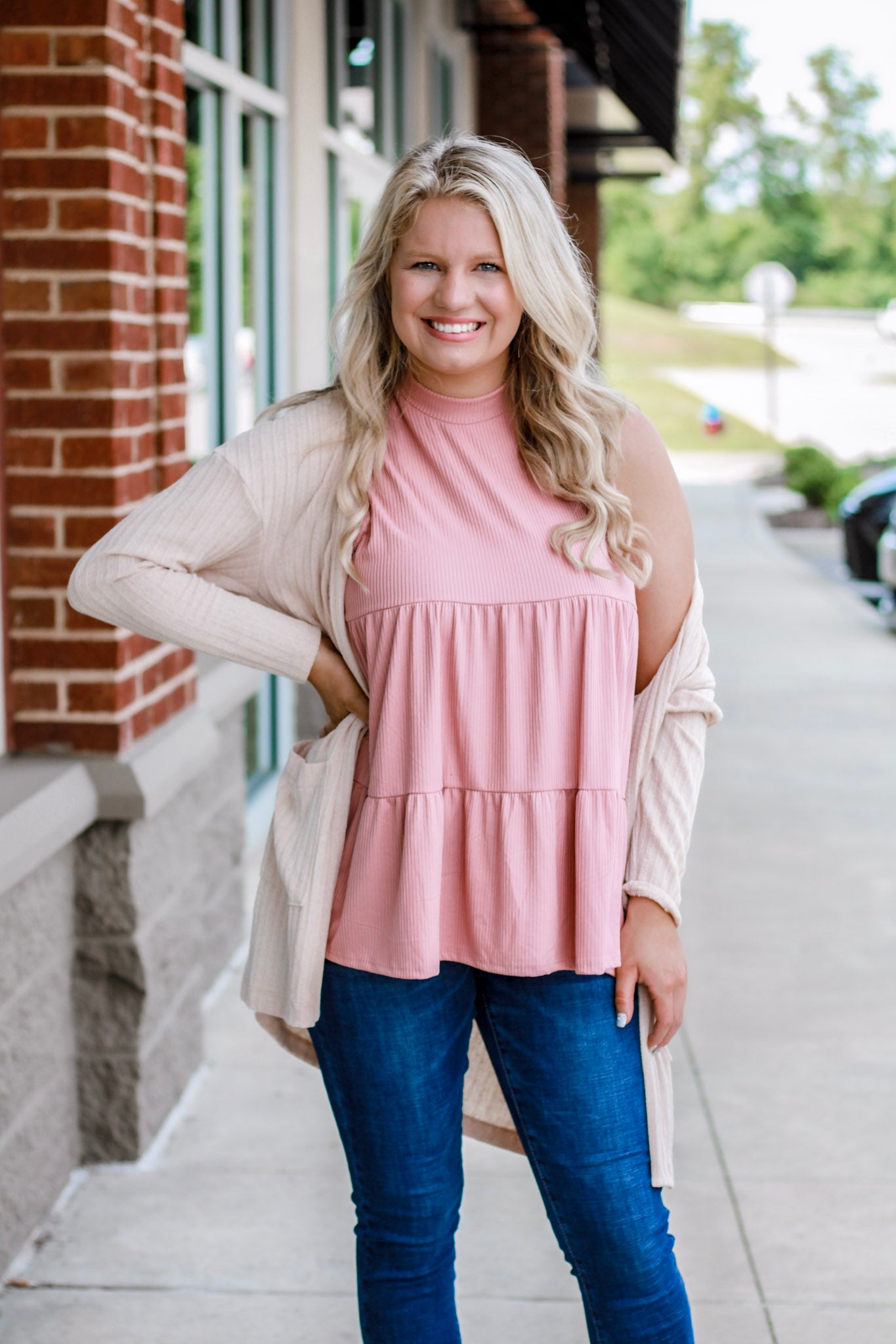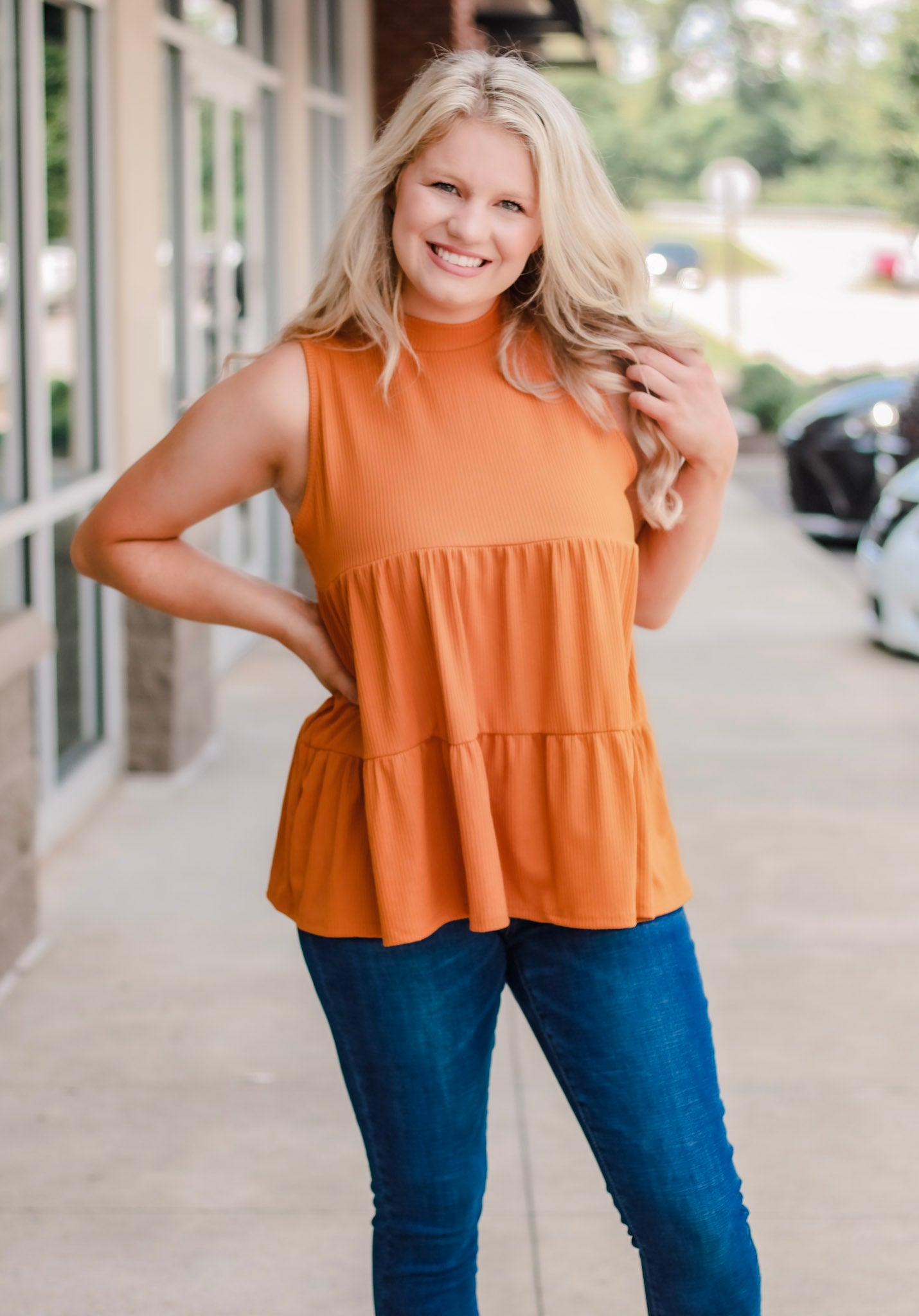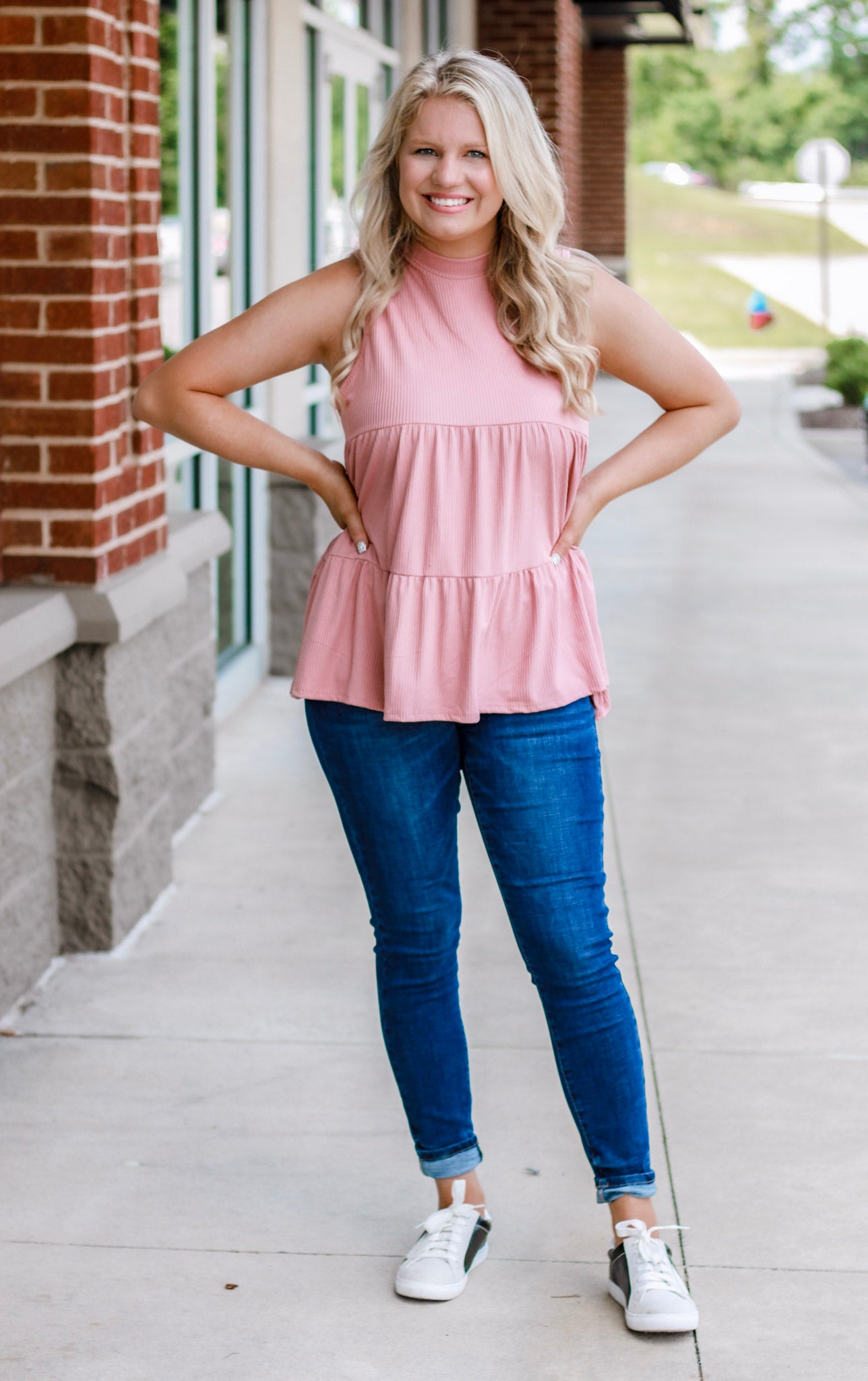 You’ll be so in style with this mock-neck tank! Its flowy and comfy and can be dressed up or down!