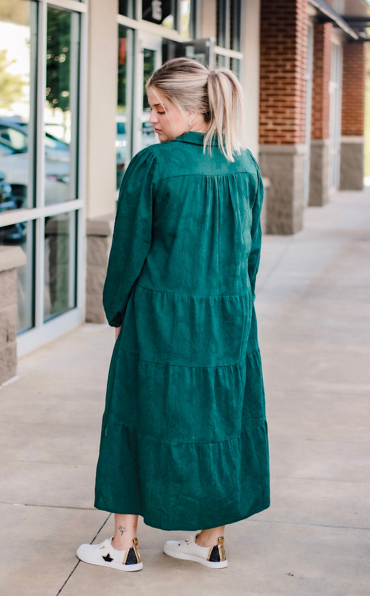 The color on this dress is amazing! It just screams holiday season. Pair it with some bling to dress it up, and you'll be ready for all those parties.