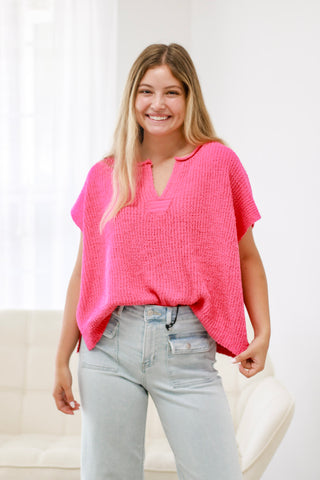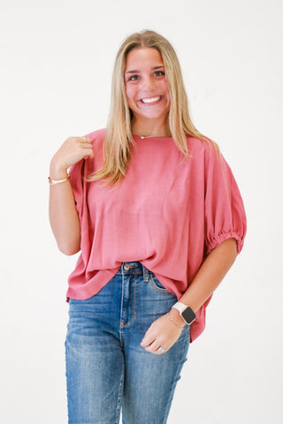 Boardwalk Stroll Elastic Sleeve Blouse Top in Berry