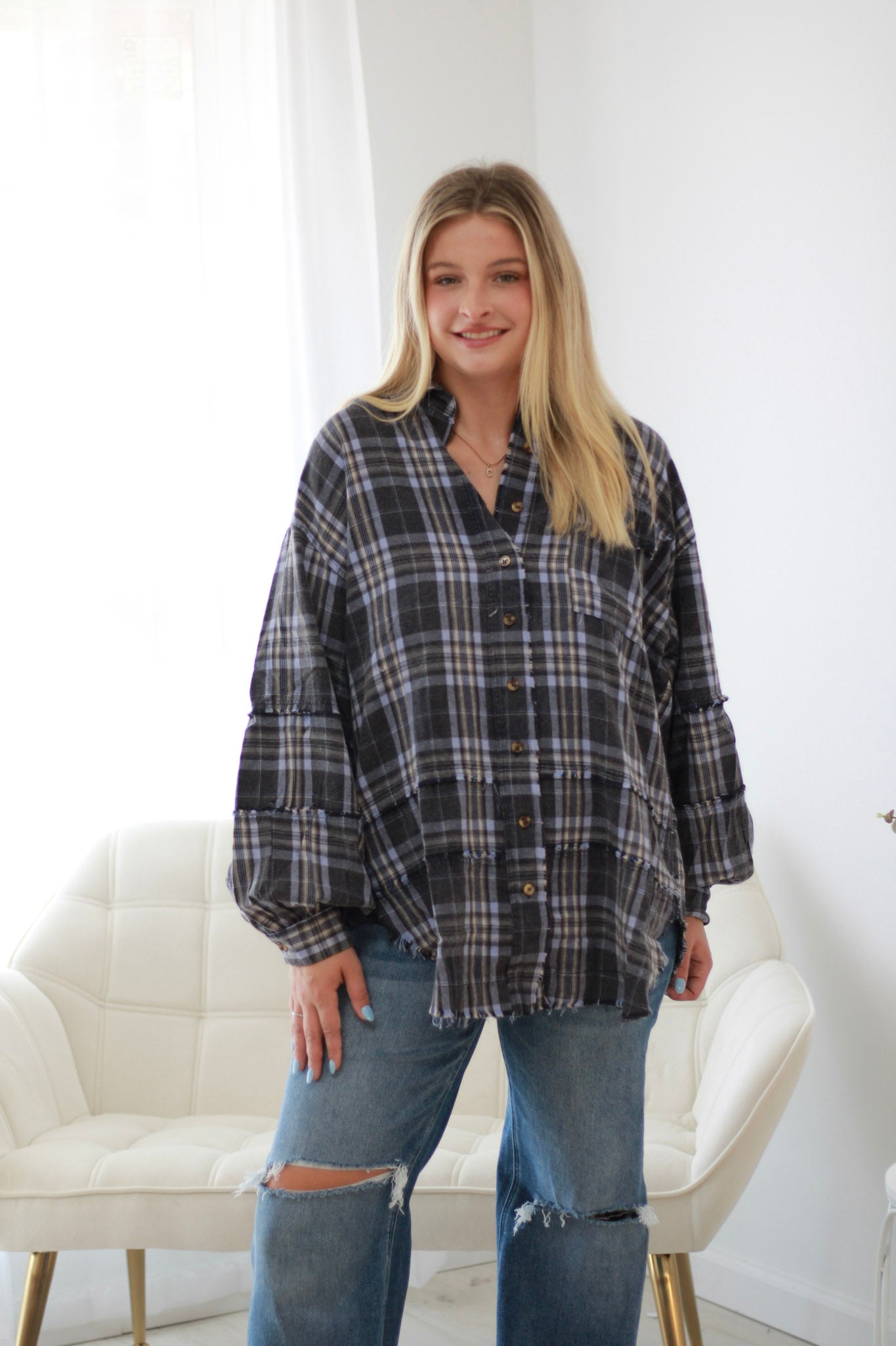 This navy flannel shirt offers a generous fit for comfortable layering. Its super soft fabric ensures cozy warmth throughout the day. Perfect for casual outings or relaxed weekends.