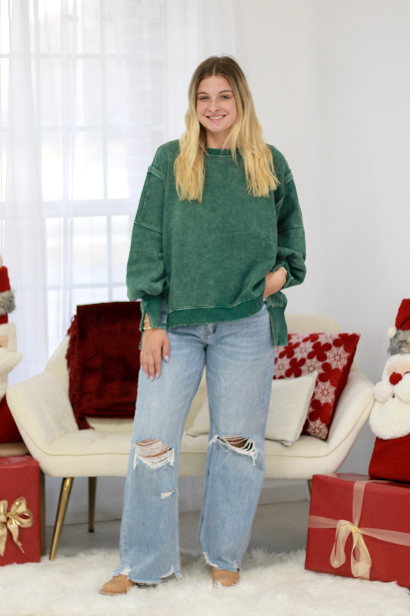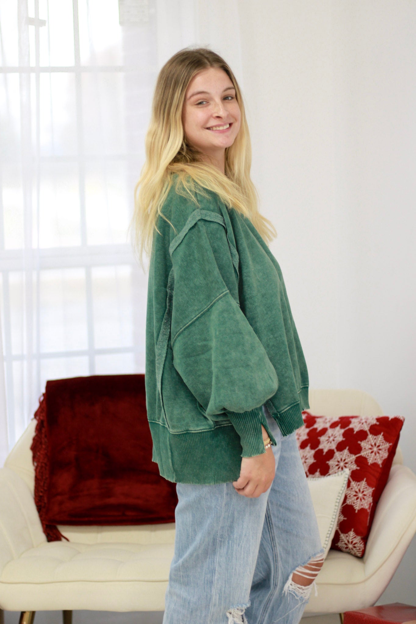 Cozy fleece pullover featuring practical side slits and an oversized silhouette for effortless comfort. The high-low hem adds modern dimension while the relaxed fit flatters all body types. Slip it on for casual days when style meets comfort.