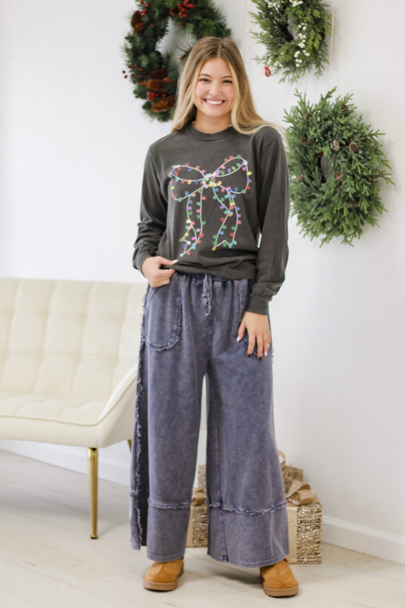 - Mineral washed terry knit palazzo pants