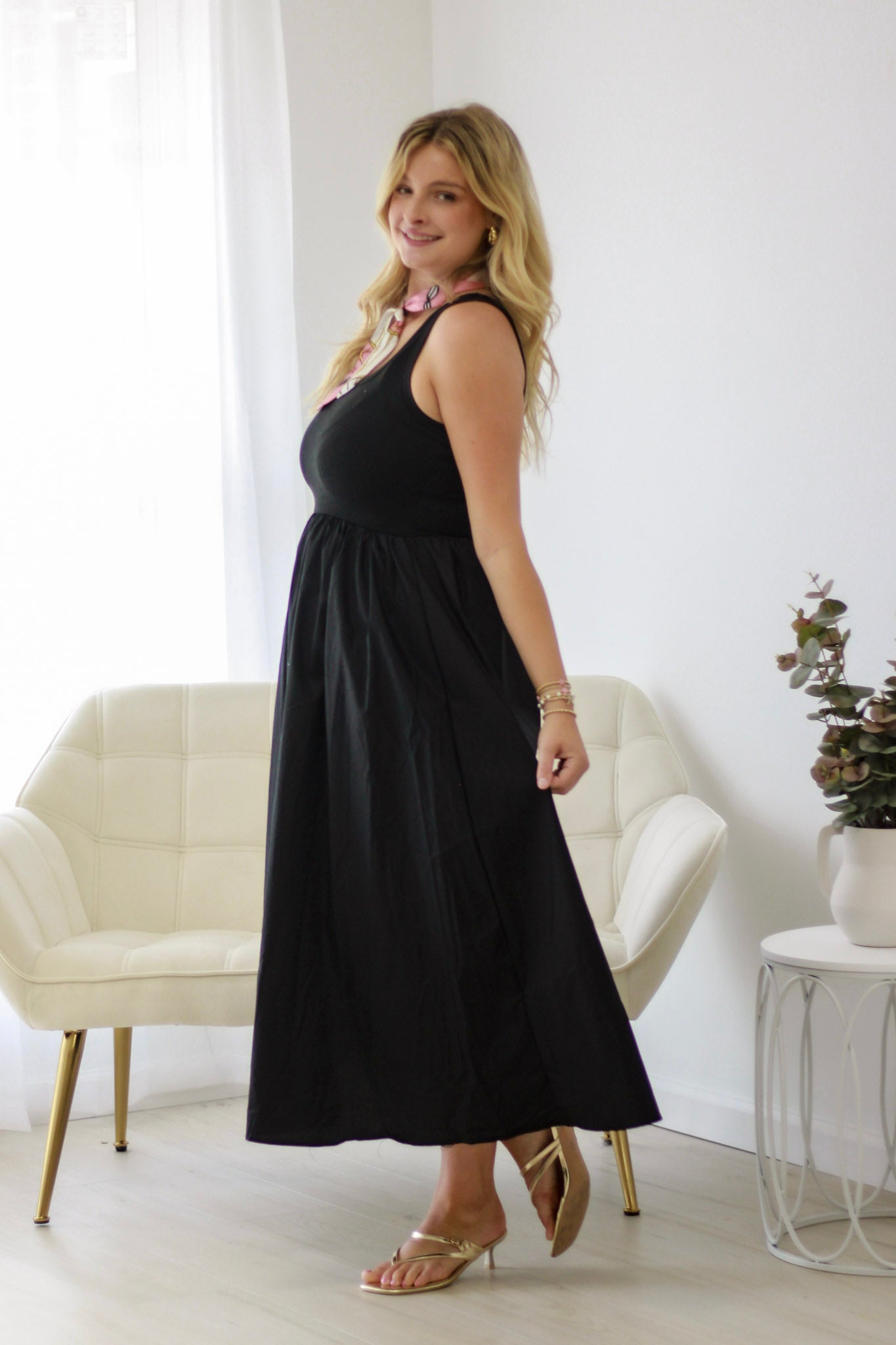 Setting Sail Midi Dress in Black