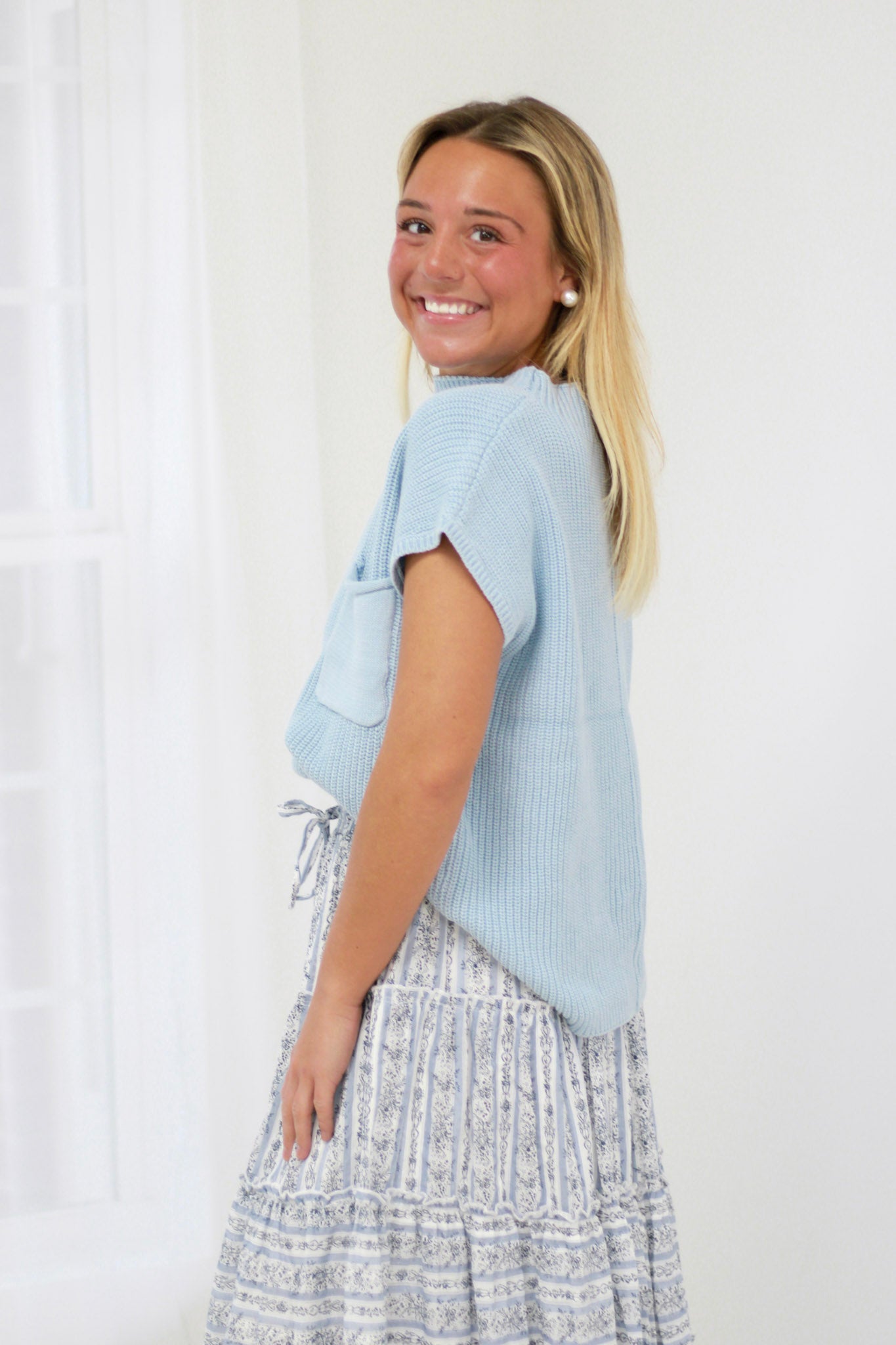 Elevate your everyday wardrobe with this Perfect Pretty Blue Mock Neck Sweater – a seasonless essential that effortlessly bridges comfort and sophistication.