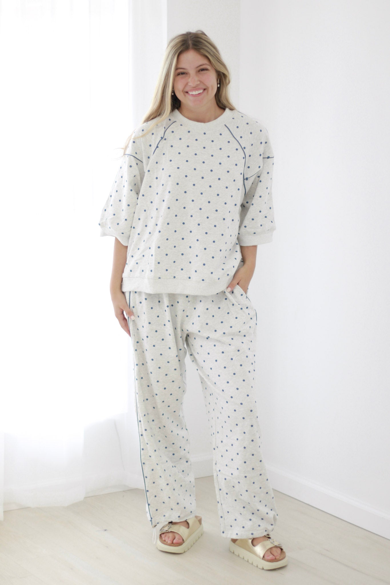 Imagine stepping out in these delightful polka dot pants—they're perfect for brunch with friends, a casual day at the office, or weekend adventures. Pair them with a simple solid top and sneakers for an effortlessly chic look, or create a coordinated matching set by pairing them with our Circle of Love Polka Dot Top (sold separately) for a head-to-toe statement that's both playful and polished.