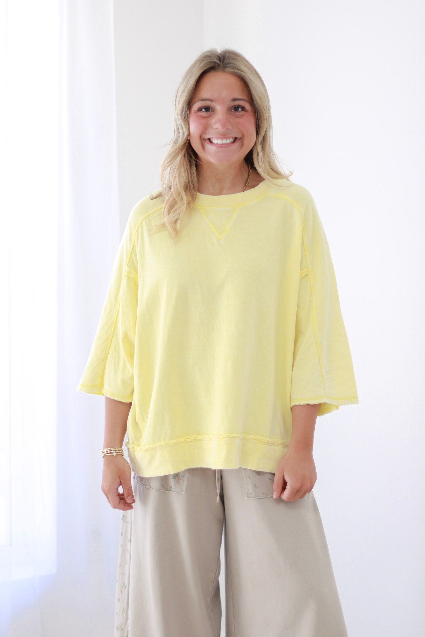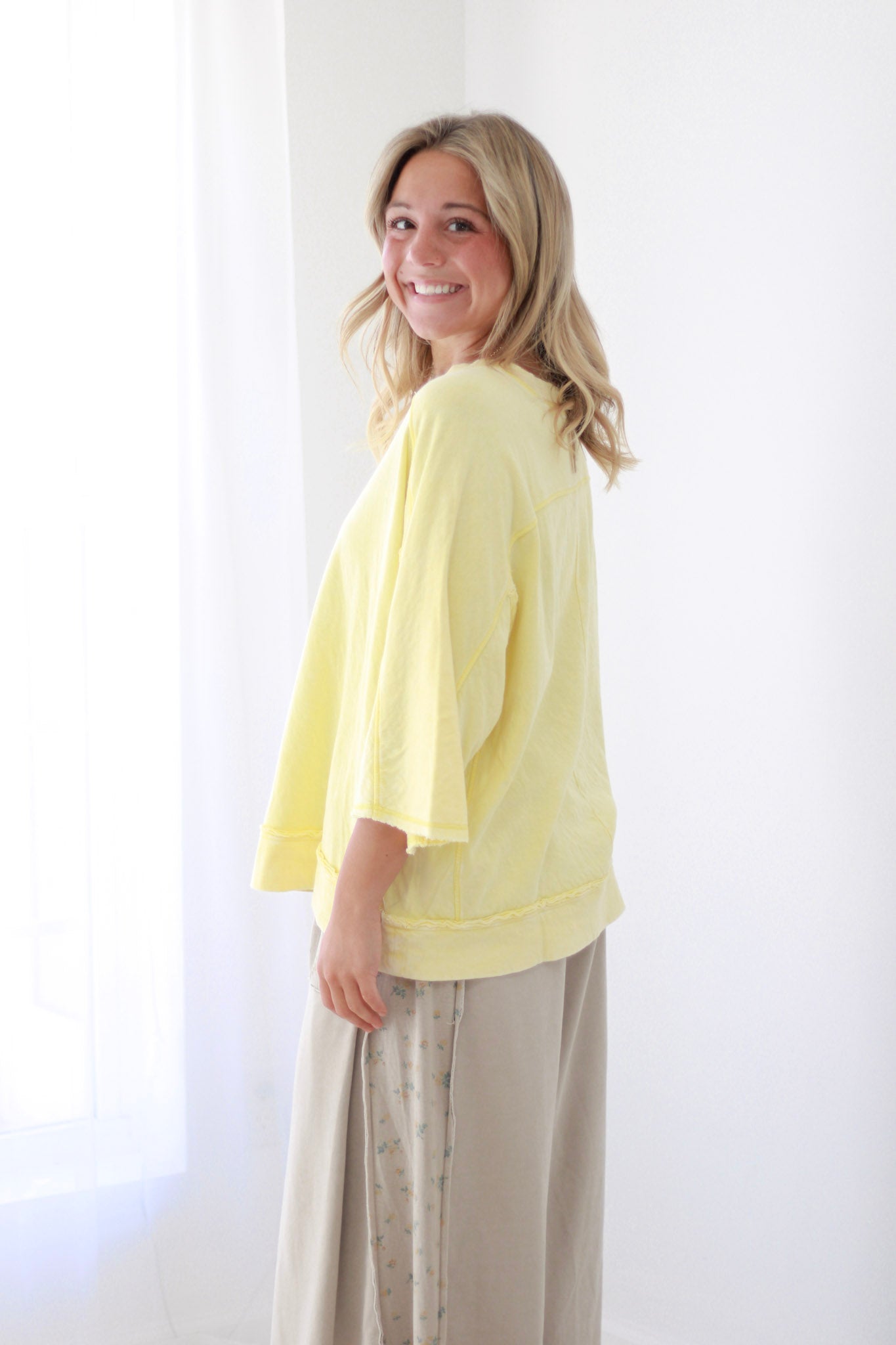 Picture yourself wearing this lemon yellow top tucked into high-waisted jeans for weekend brunch, or layered under a blazer for a fresh office look. Pair it with white sneakers and denim for an easy casual vibe, or elevate it with statement jewelry and tailored trousers for date night.