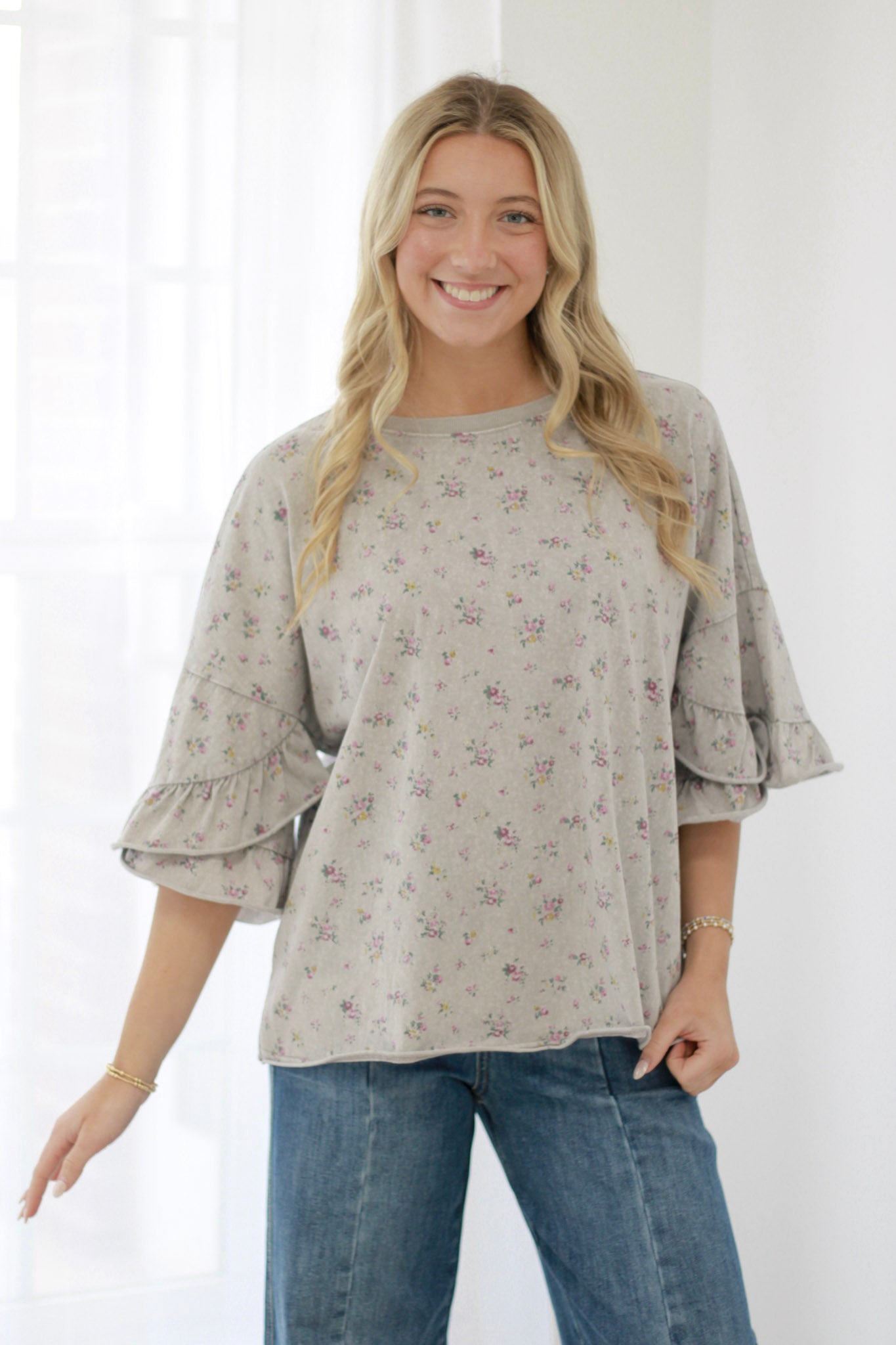 Turn heads in this stunning floral top that combines romantic charm with effortless comfort. Crafted by EASEL in a gorgeous dusty lilac hue, this piece features a generous fit that flatters every figure while providing the freedom to move and breathe with ease throughout your day.