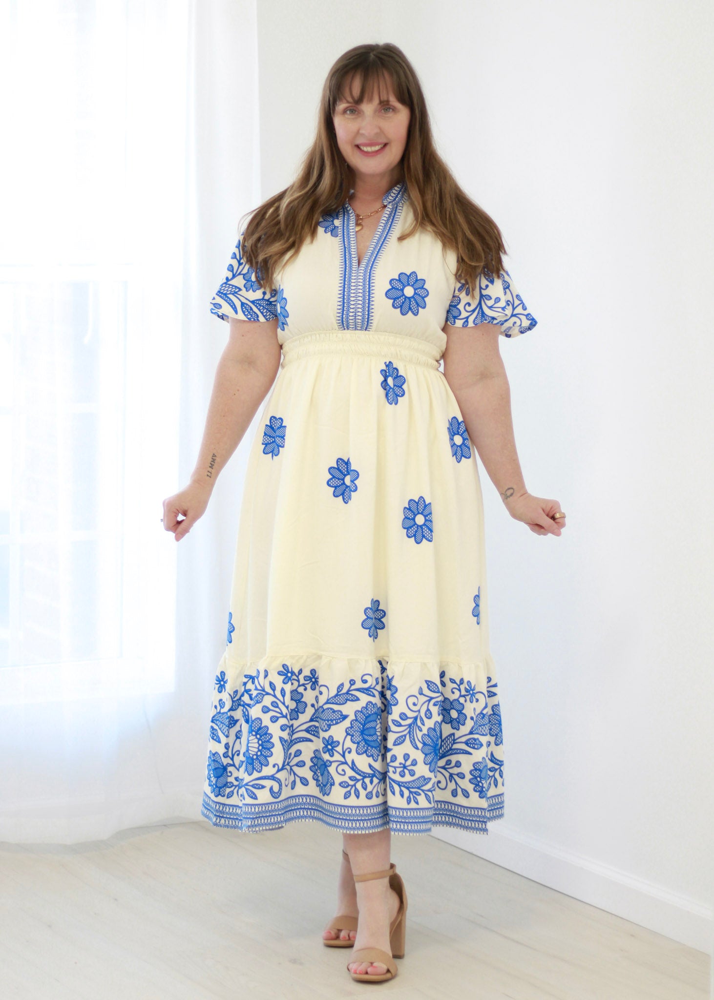 Step into effortless elegance with the Spring Scene Floral Midi Dress by UMGEE USA—a contemporary silhouette that captures the season's romantic spirit. This midi-length dress features a flattering fit with an elastic waistband for all-day comfort and a fully lined interior for premium quality and ease of wear.