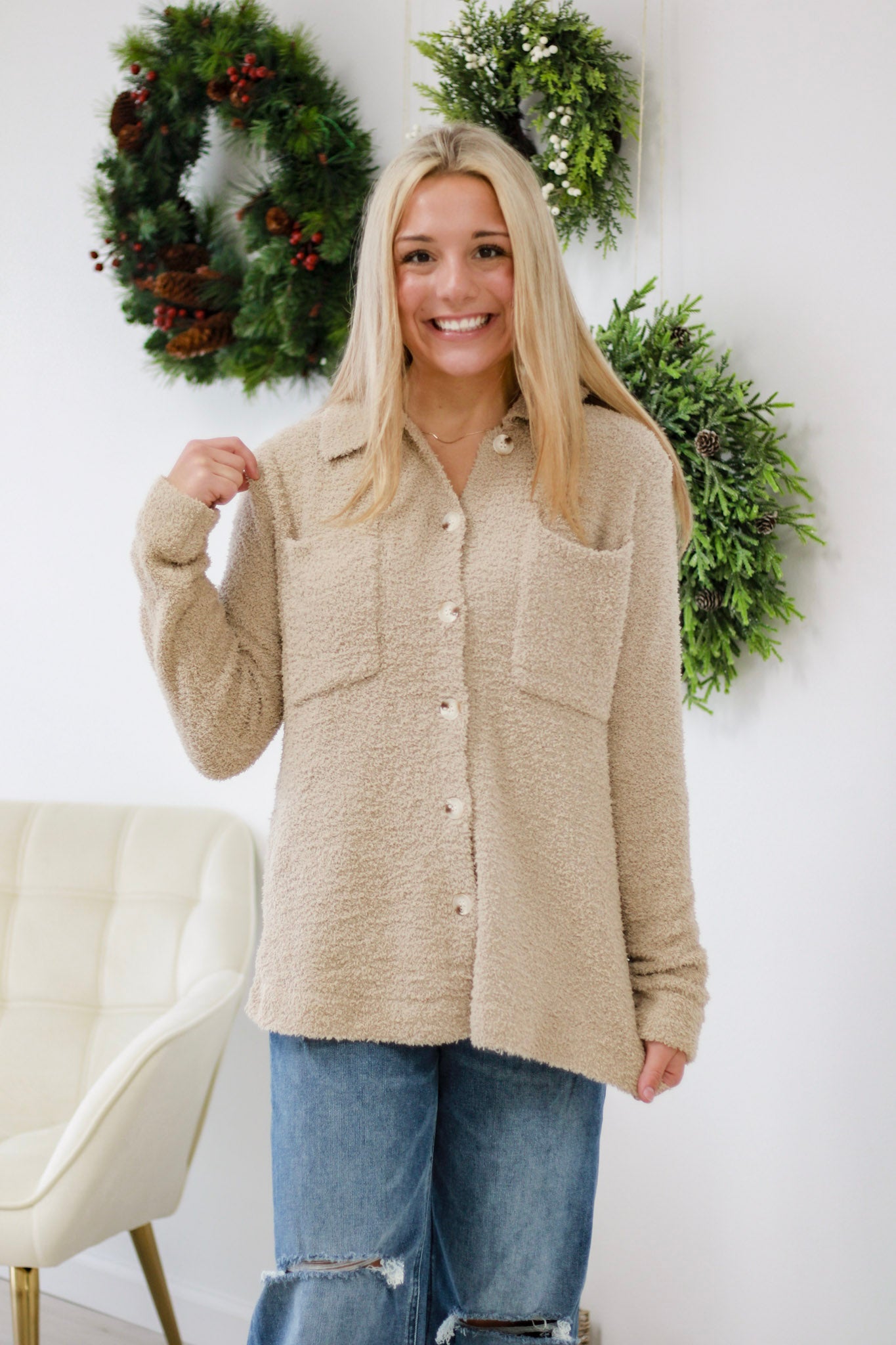 - Mocha teddy bear shacket