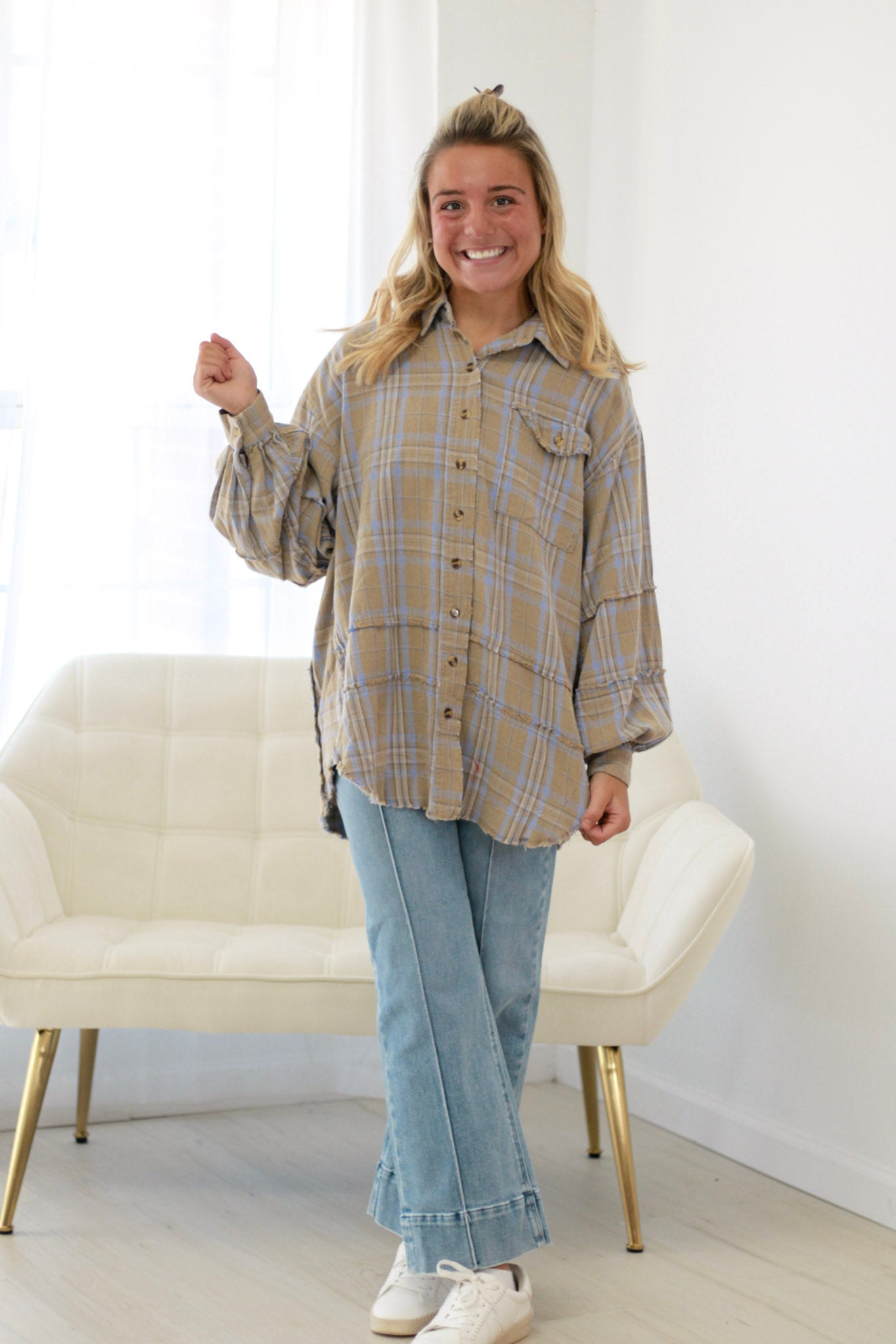 Tree Farm Favorite Plaid Button Up in Sage Grey