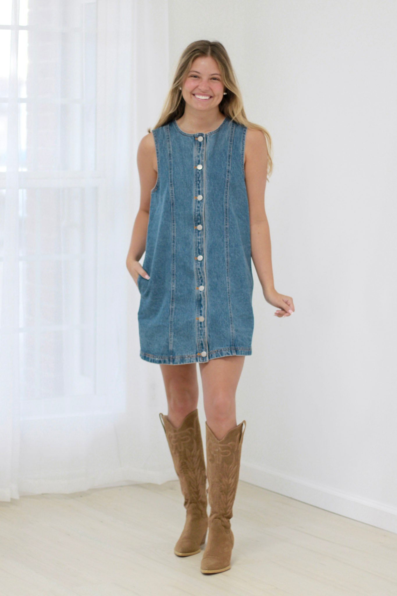 Live your best life in the That's My Life Denim Dress – the effortlessly cool piece that takes you from morning coffee to evening plans without missing a beat.