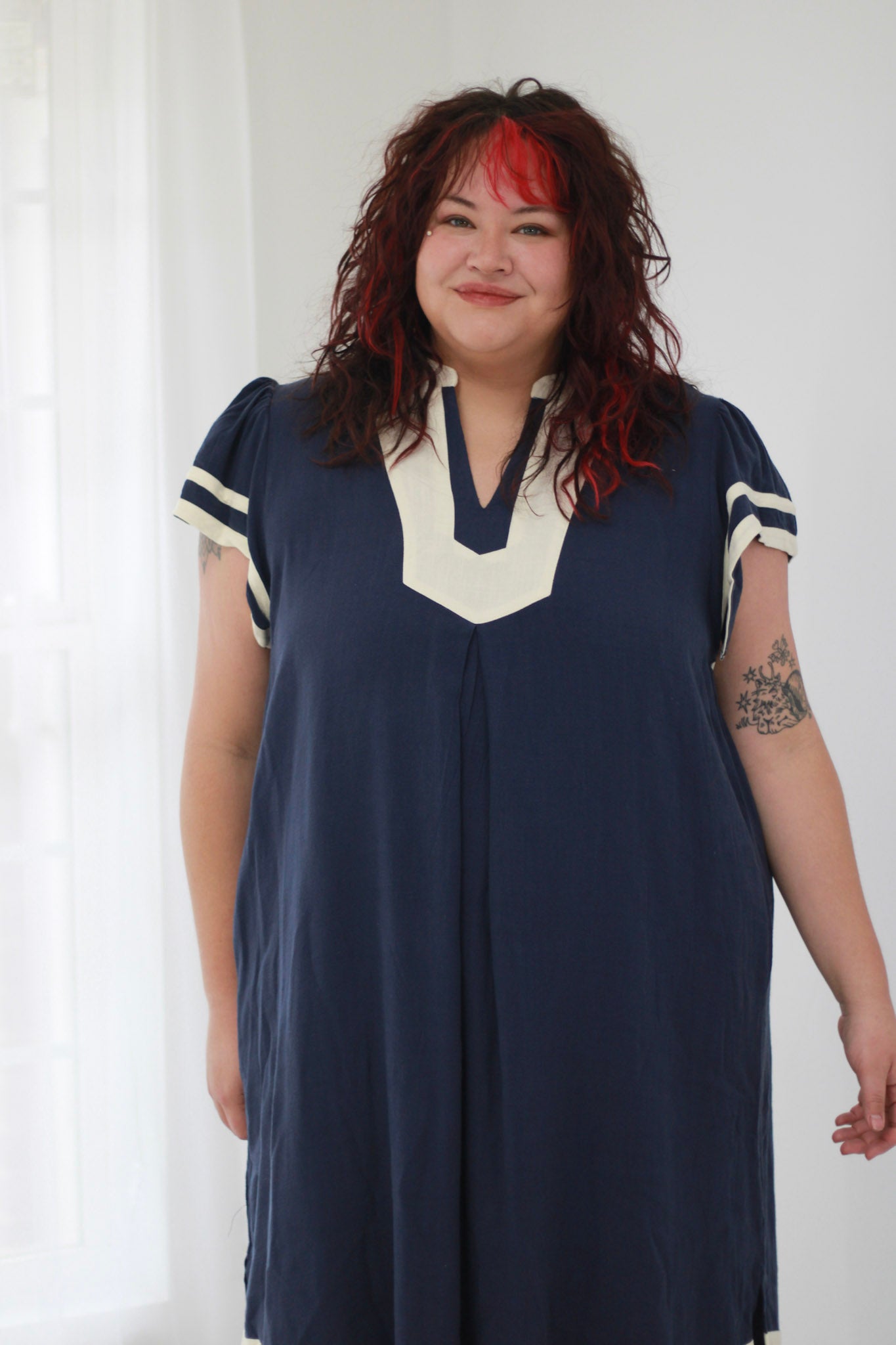 Crafted from premium fabric, this dress drapes beautifully to flatter your silhouette while providing all-day comfort. The rich navy hue is universally flattering and transitions seamlessly from office to evening, making it a versatile essential in your wardrobe.