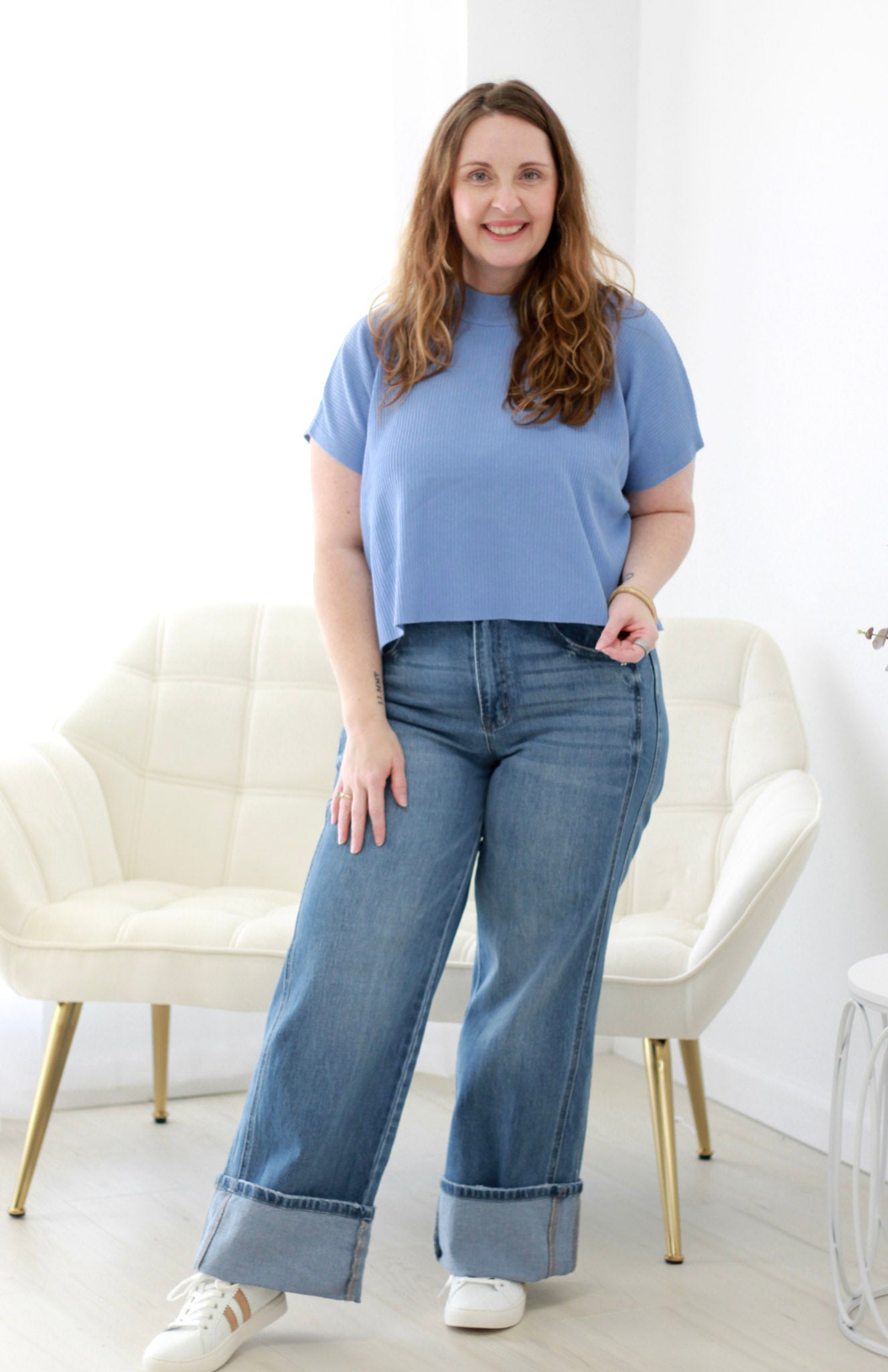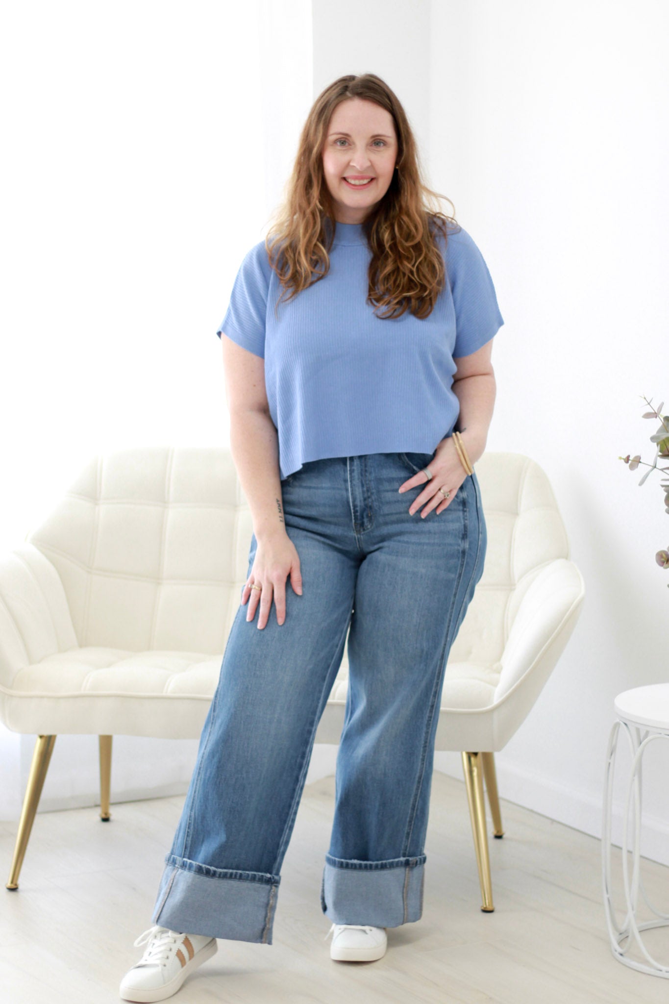 Come Sail Away Short Sleeve Sweater in Cornfield Blue