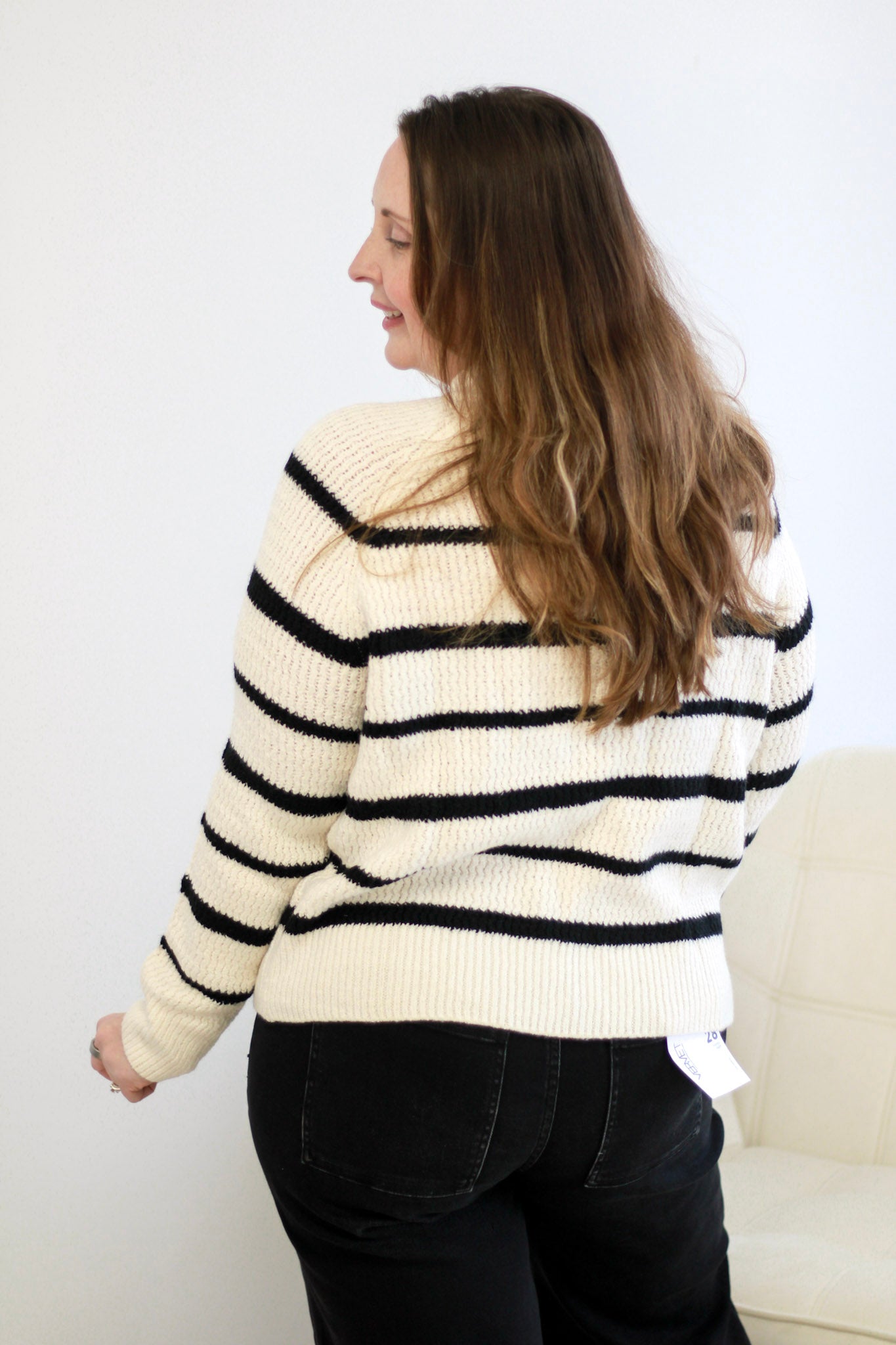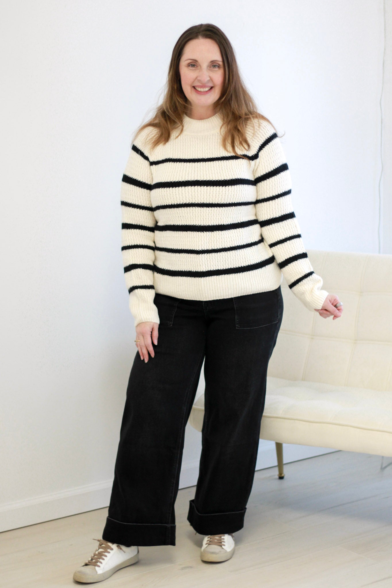 This cozy knit pullover features a classic high neckline and eye-catching stripes for effortless layering through the colder months. Perfect for pairing with your favorite jeans or trousers, it delivers warmth and timeless style in one versatile piece.