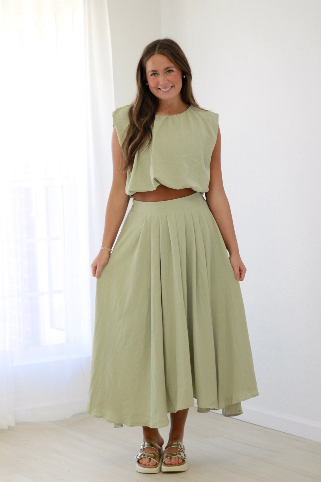 In the Moment Balloon Crop Top in Light Olive