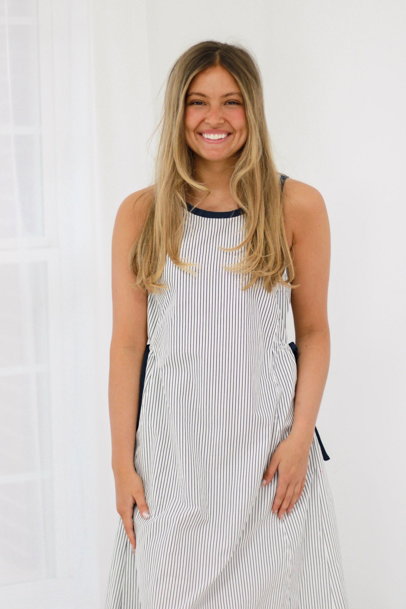 Effortlessly chic meets everyday ease in this striped dress that's designed to move with your day. The flattering silhouette features a cute cinch waist option that lets you customize your fit—wear it relaxed or define your shape with a simple tie.