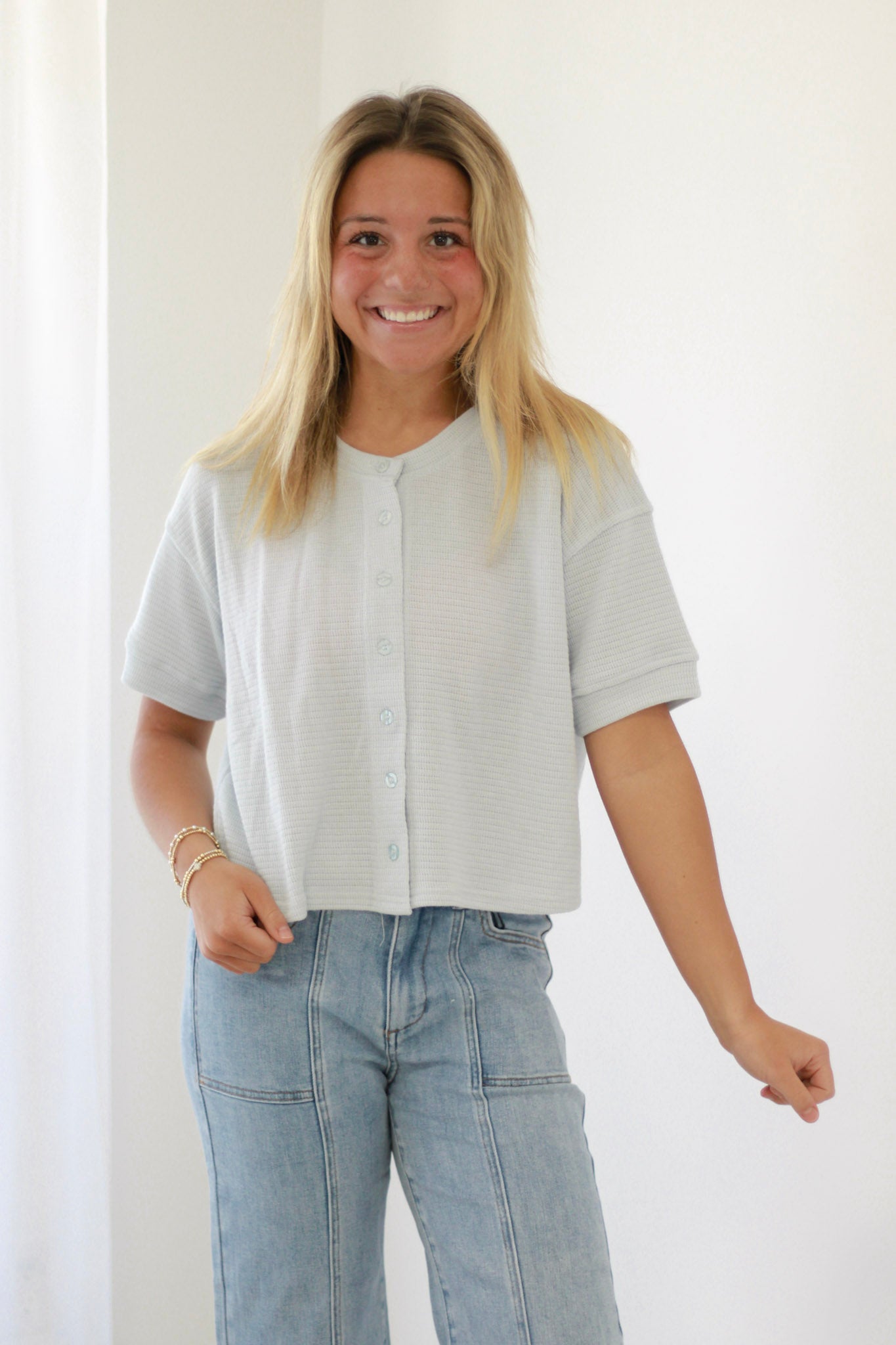 Effortless layering meets modern style in this relaxed boxy cardigan. The soft dusty blue hue and contemporary silhouette create a versatile piece that elevates any outfit, making it the perfect transitional layer for year-round wear.