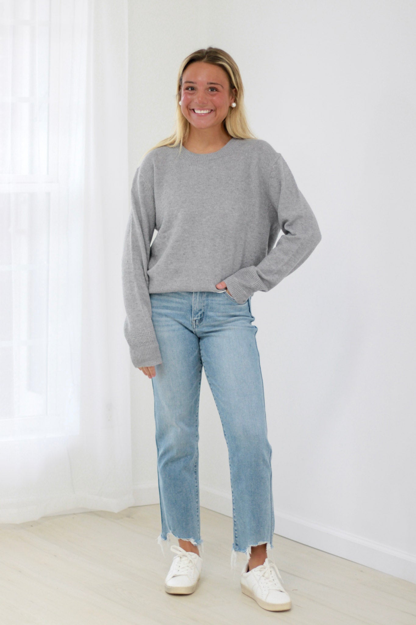Add this versatile heather gray sweater to your collection and simplify your daily styling routine.