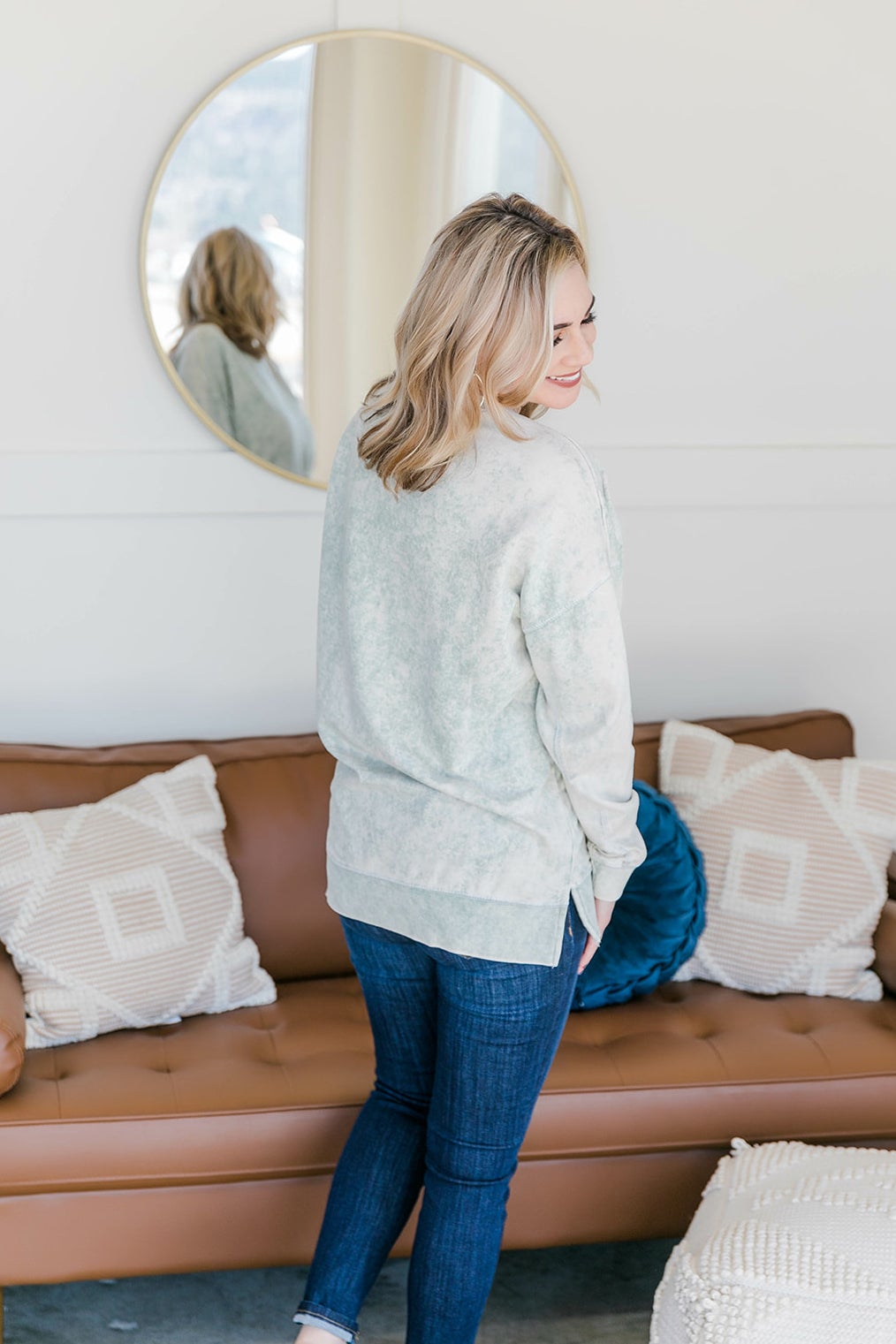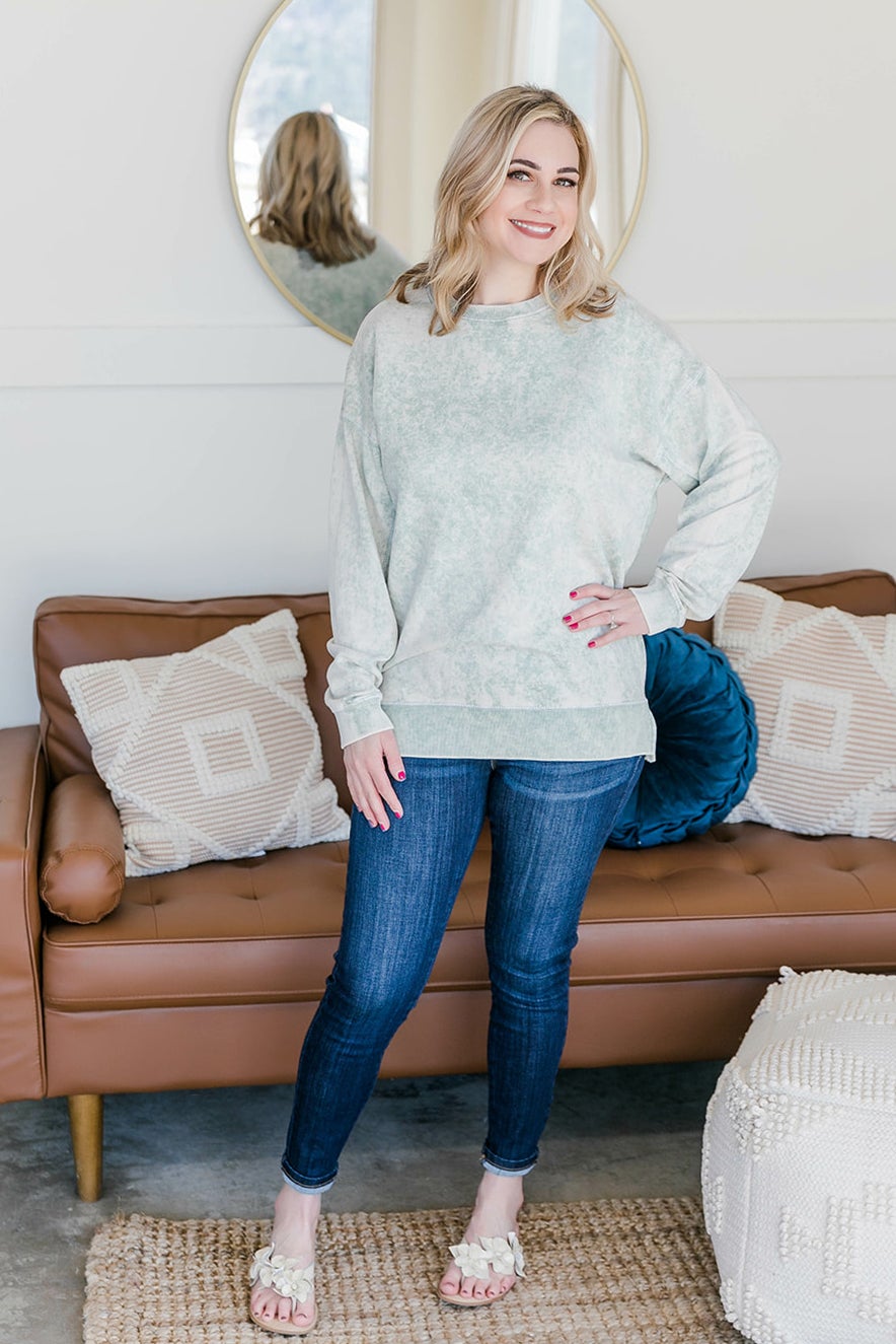 Well, well, look at what we have here with this perfect little top. Just cozy enough for those brisk summer mornings but still perfect to carry you through the day. Pair it with leggings, shorts, capris; it is truly a versatile piece.