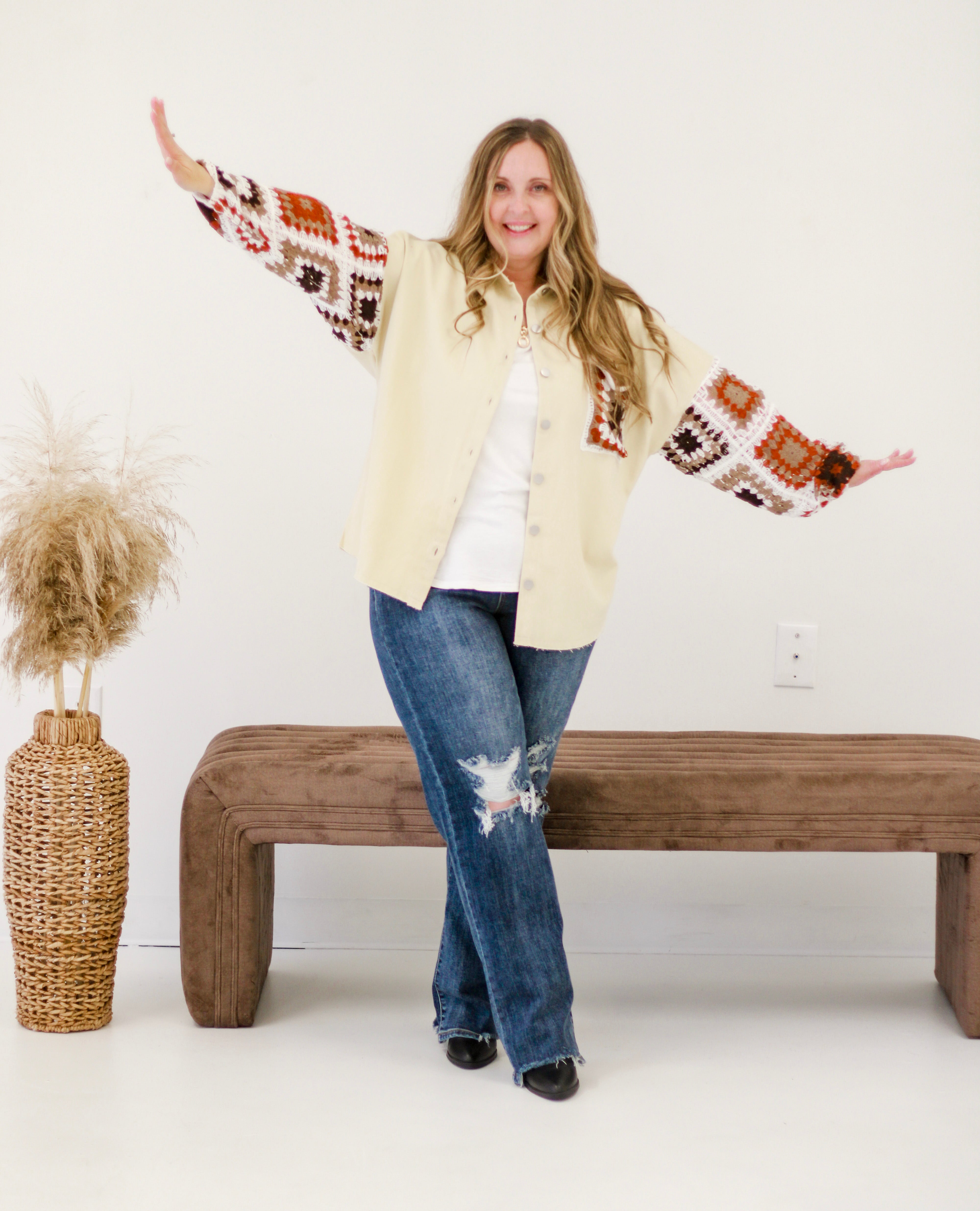 - Ivory Jacket with crochet detailed sleeves