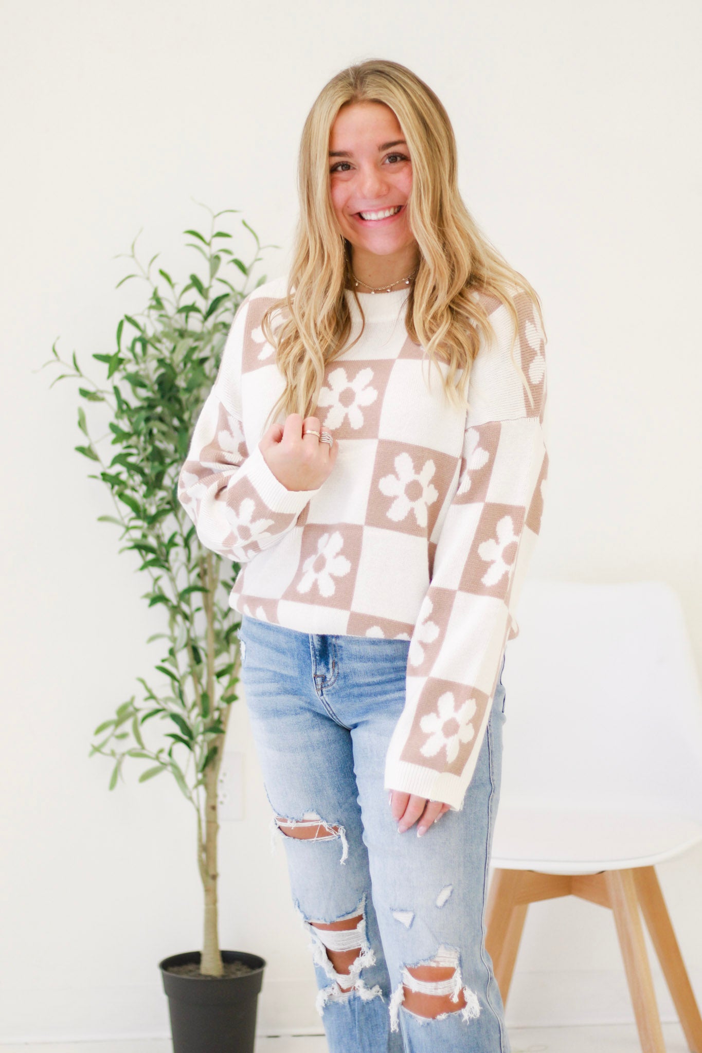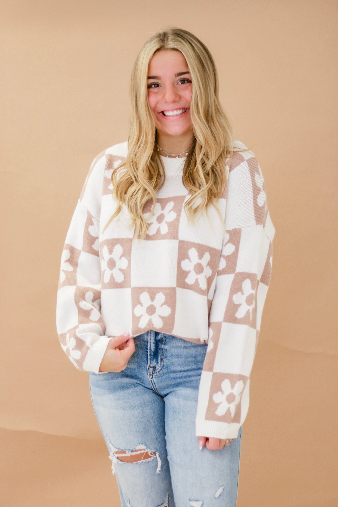 - Taupe/Ivory block sweater
