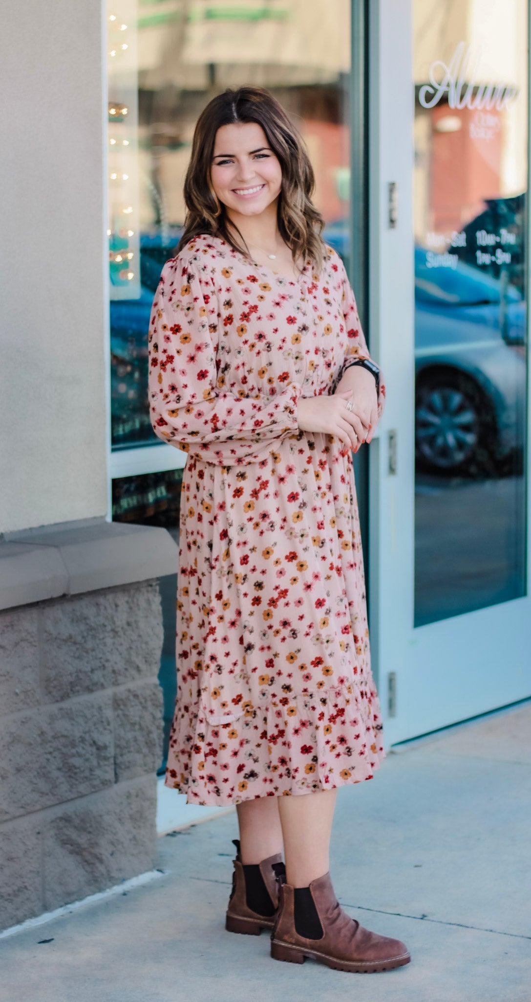 Are you looking for a fresh start to your day? This gorgeous maxi dress is perfect to get you feeling cute and ready to tackle that to do list. You can easily add a cardigan and some booties to keep you warm in the cooler weather, which will quickly turn that frown upside down. Don't let this fun and flirty dress pass you by!