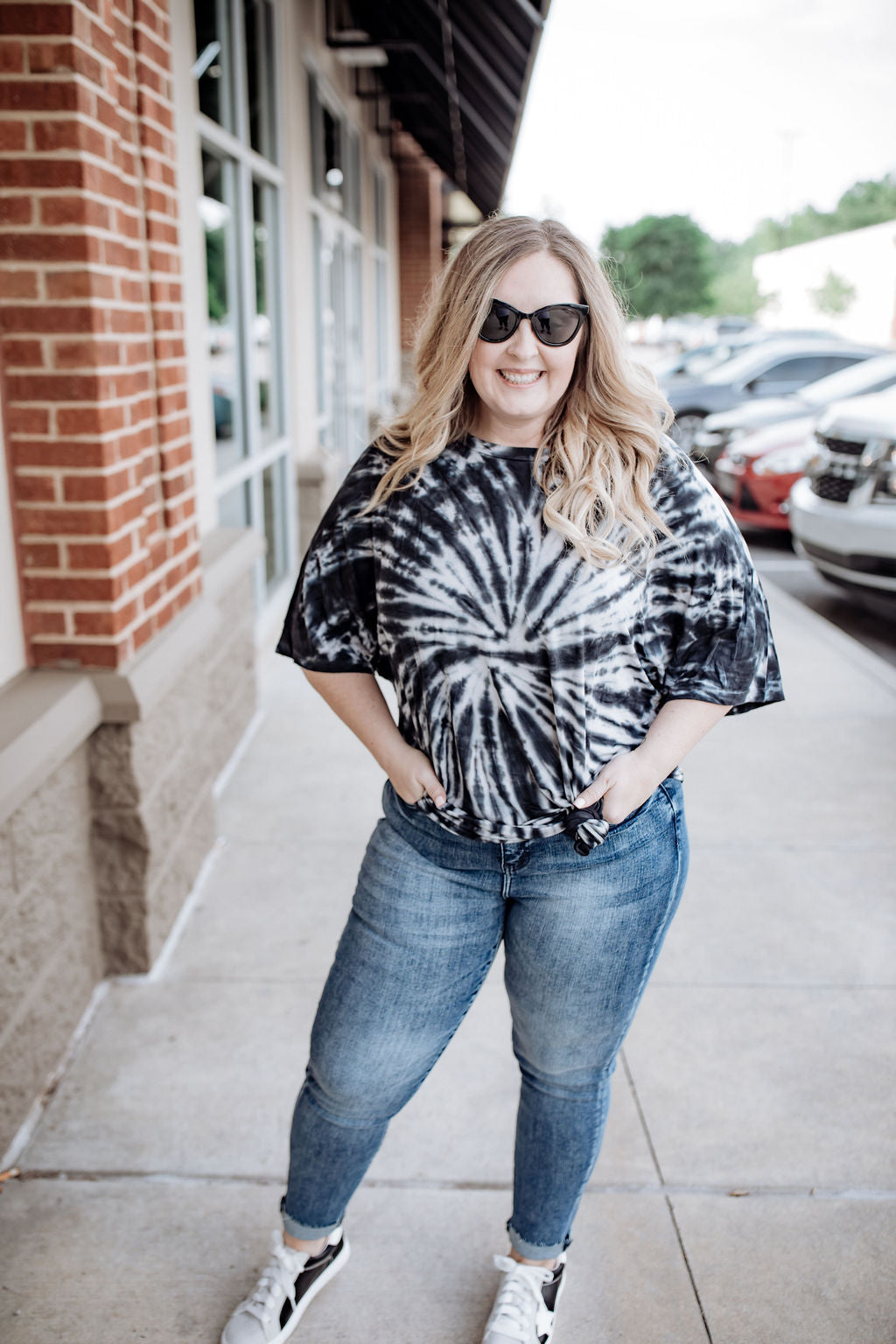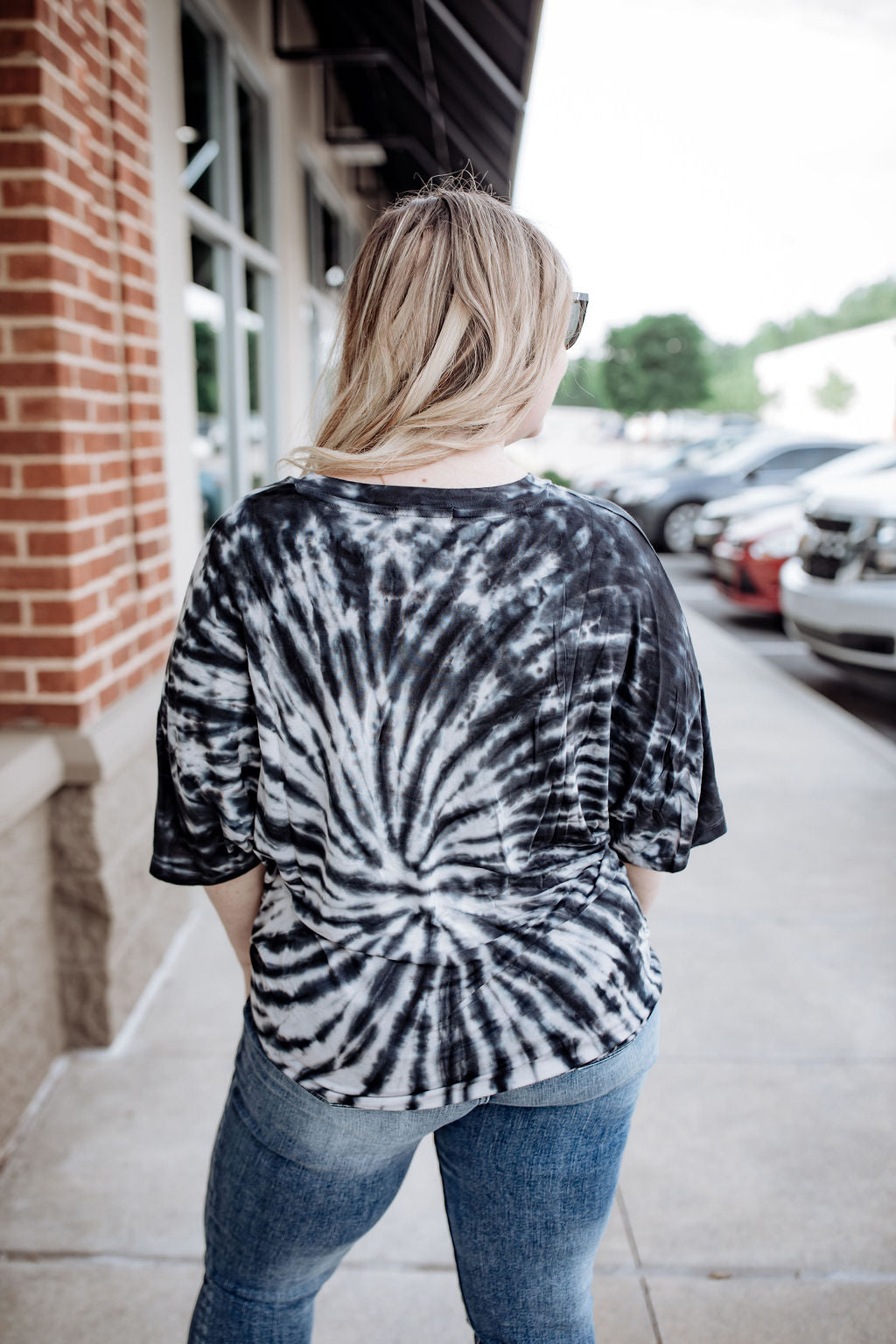 What is more fun than tie dye? This is the ultimate bike shorts tee! The length is long enough for shorts or leggings. Pair with some tennis shoes and a baseball cap for a casual but cute outfit.