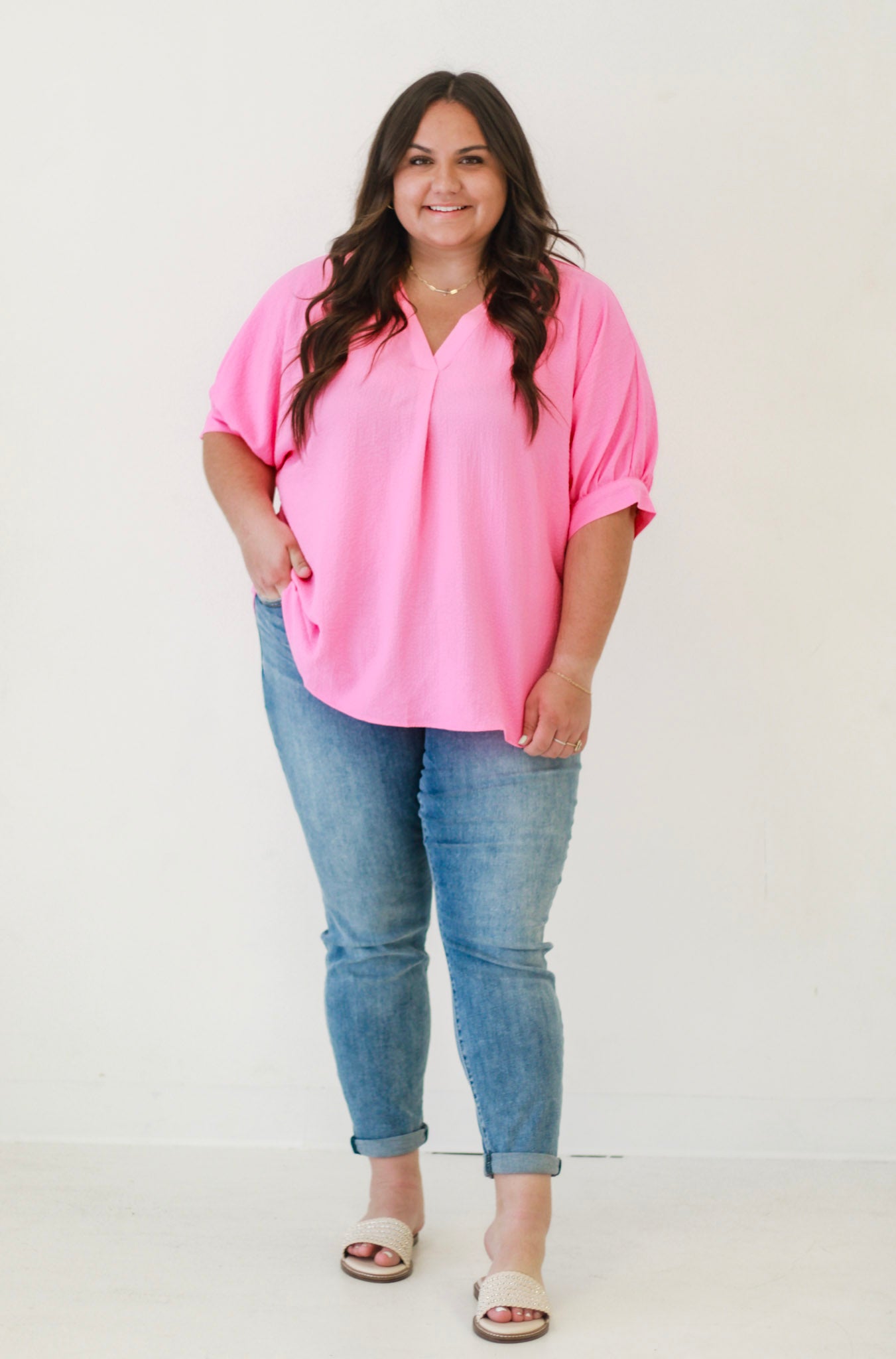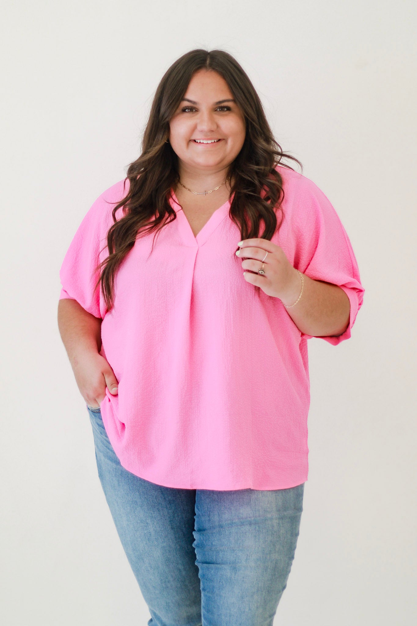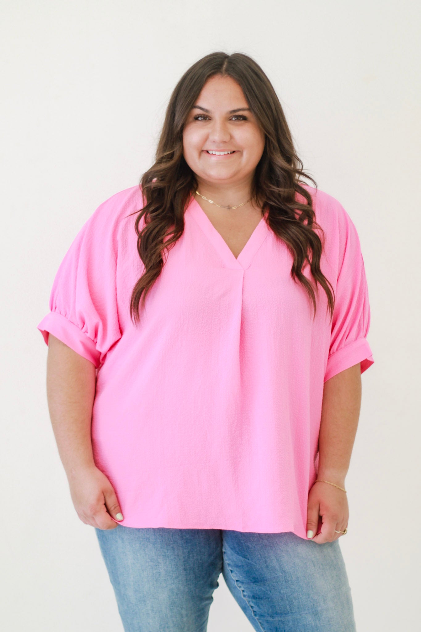 - Pink top with V neck