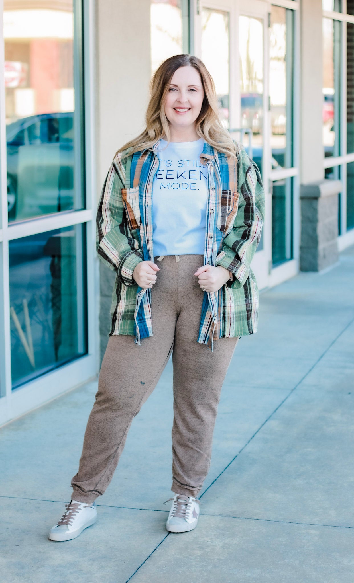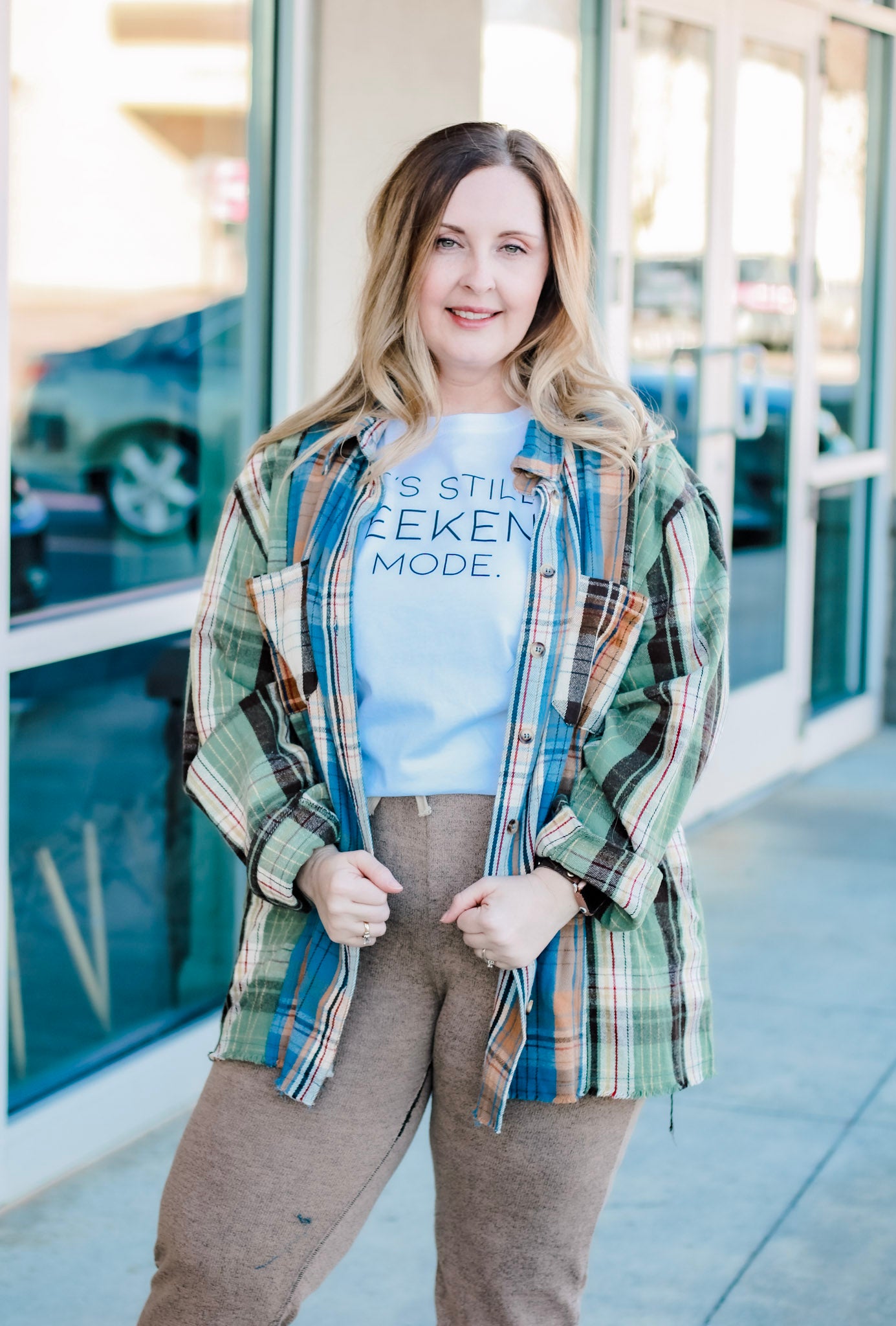 The colors in this plaid are amazing! Such a fun combination of neutrals with just a little pop of excitement. The button up front leaves you able to wear this alone as a shirt or layered over your favorite tanks, making this a super versatile piece! This beautiful top is great year round with all of your most worn bottoms.