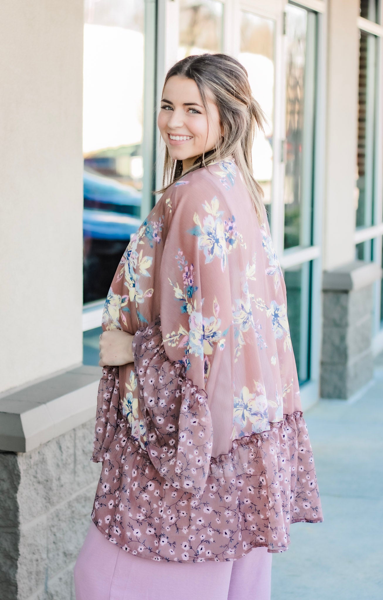 - Brown with floral detail kimono