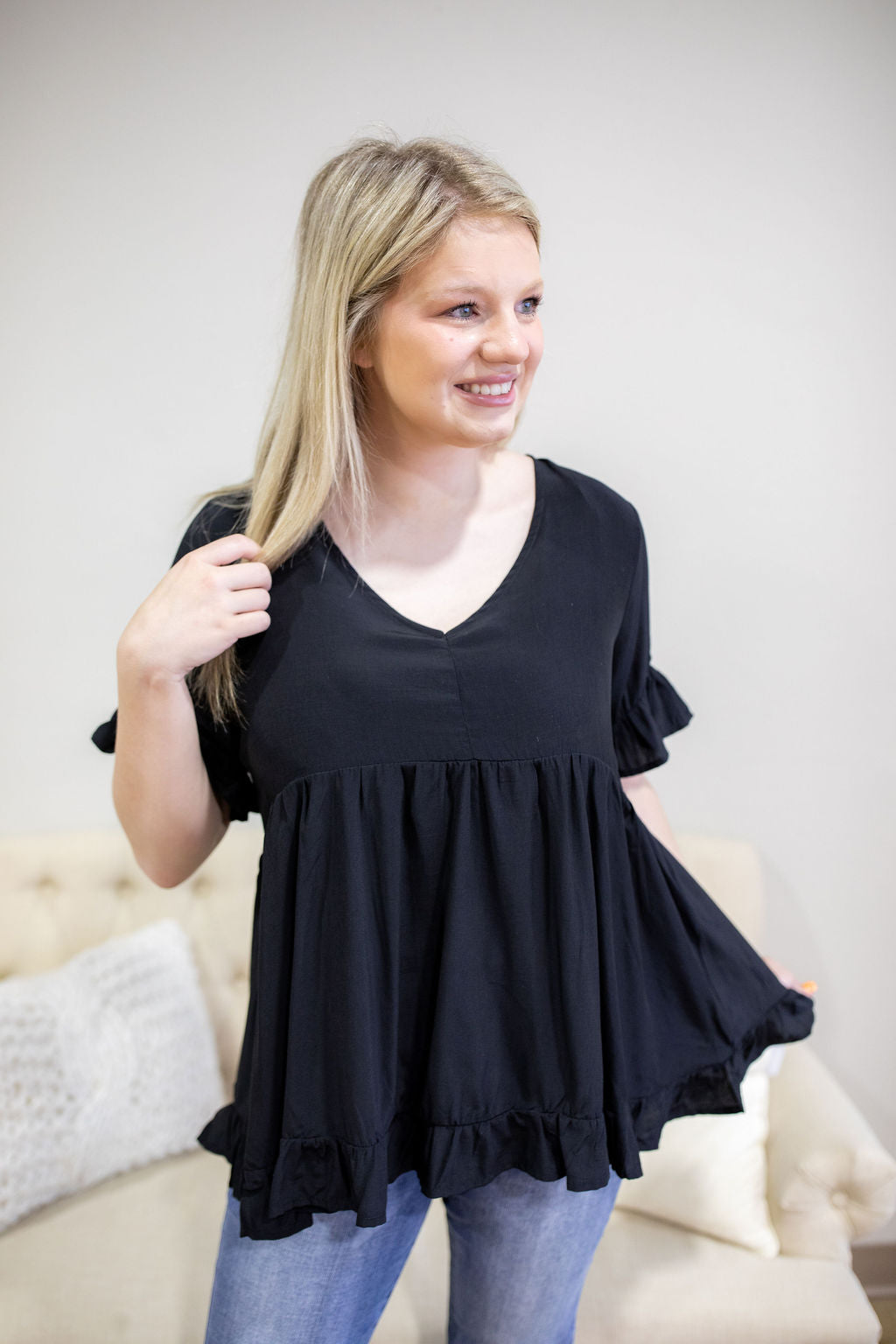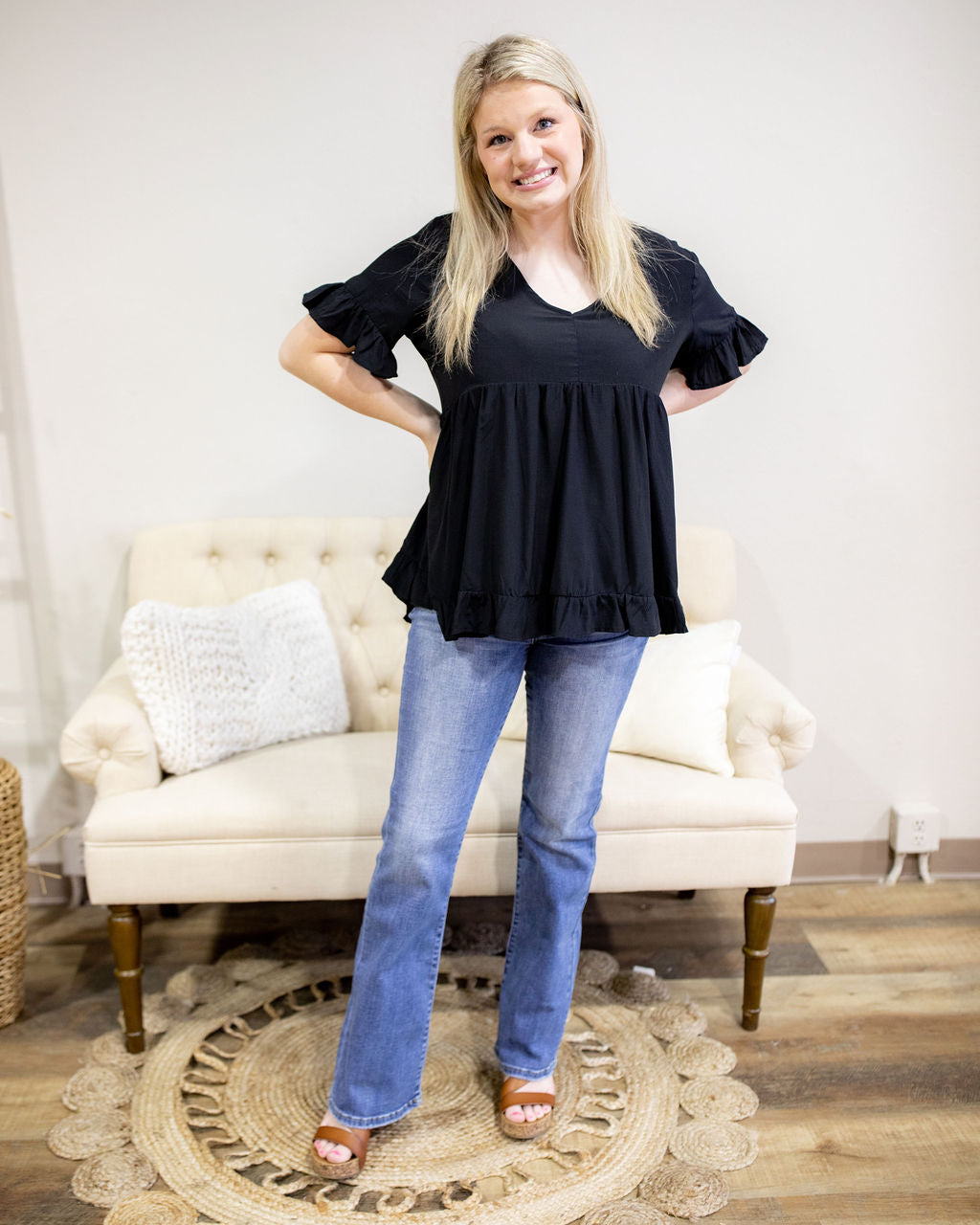 You can never have too many fun, black tops! This one is a great summer pick because it is so light and airy, but definitely fine without a cami!