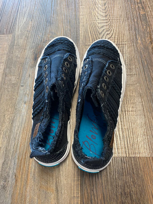 Bring a retro-inspired look to your ensemble with our slip-on sneaker from Blowfish. This low-to-pair sneaker features a distressed canvas upper, faux lace holes, and a cushioned footbed for all-day-long wear.