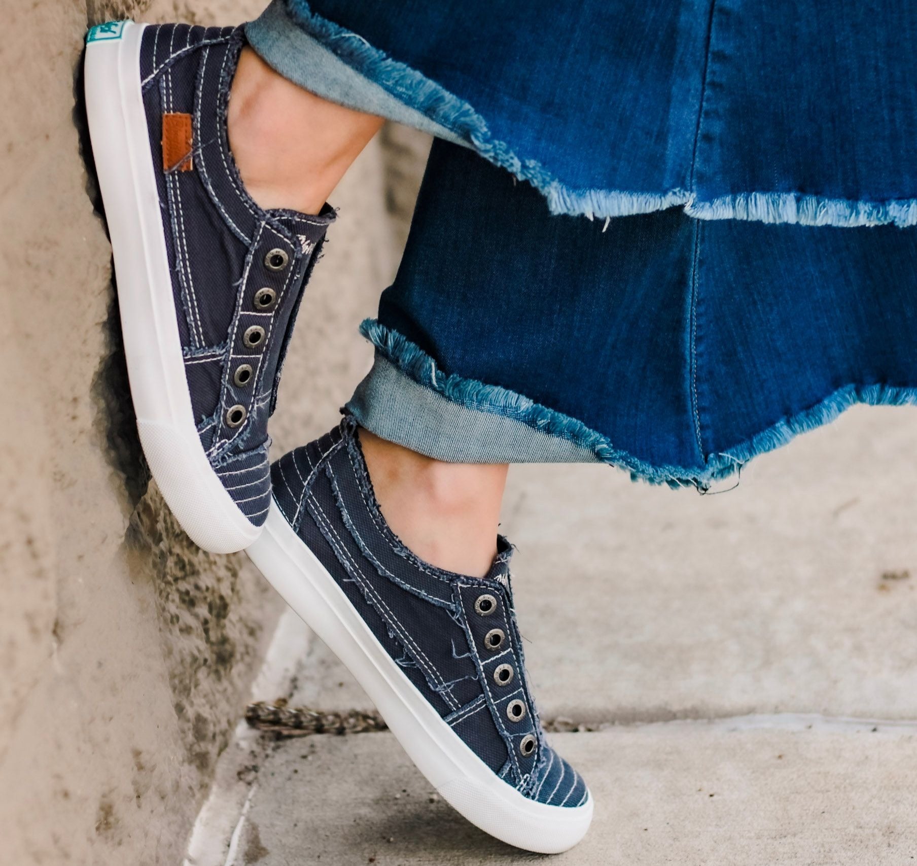 Bring a retro-inspired look to your ensemble with our slip-on sneaker from Blowfish. This low-to-pair sneaker features a distressed canvas upper, faux lace holes, and a cushioned footbed for all-day-long wear.