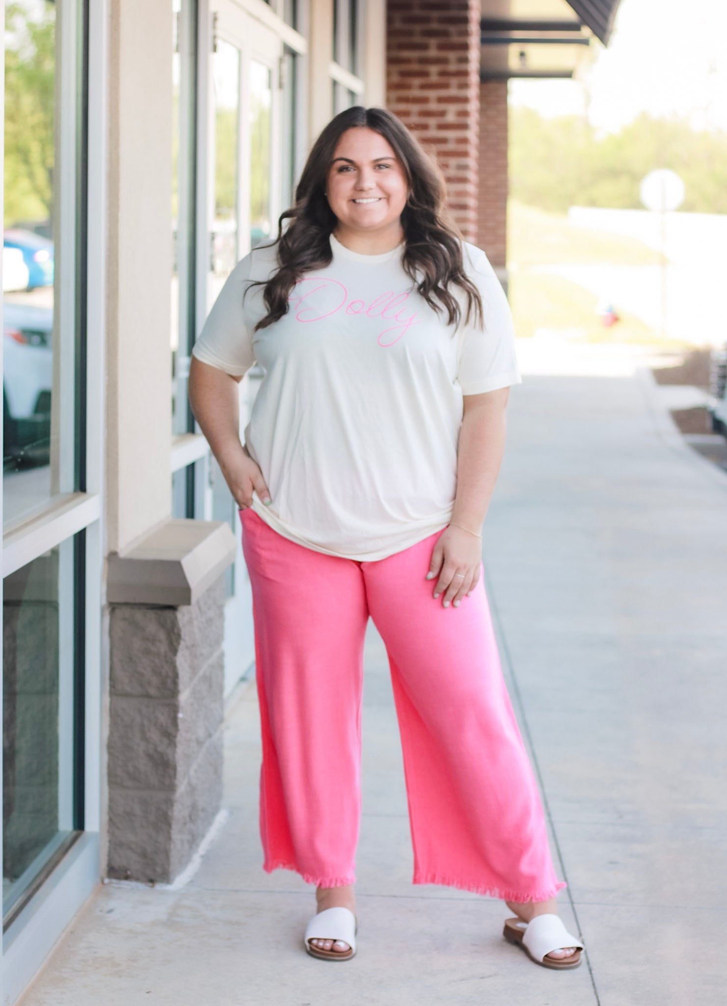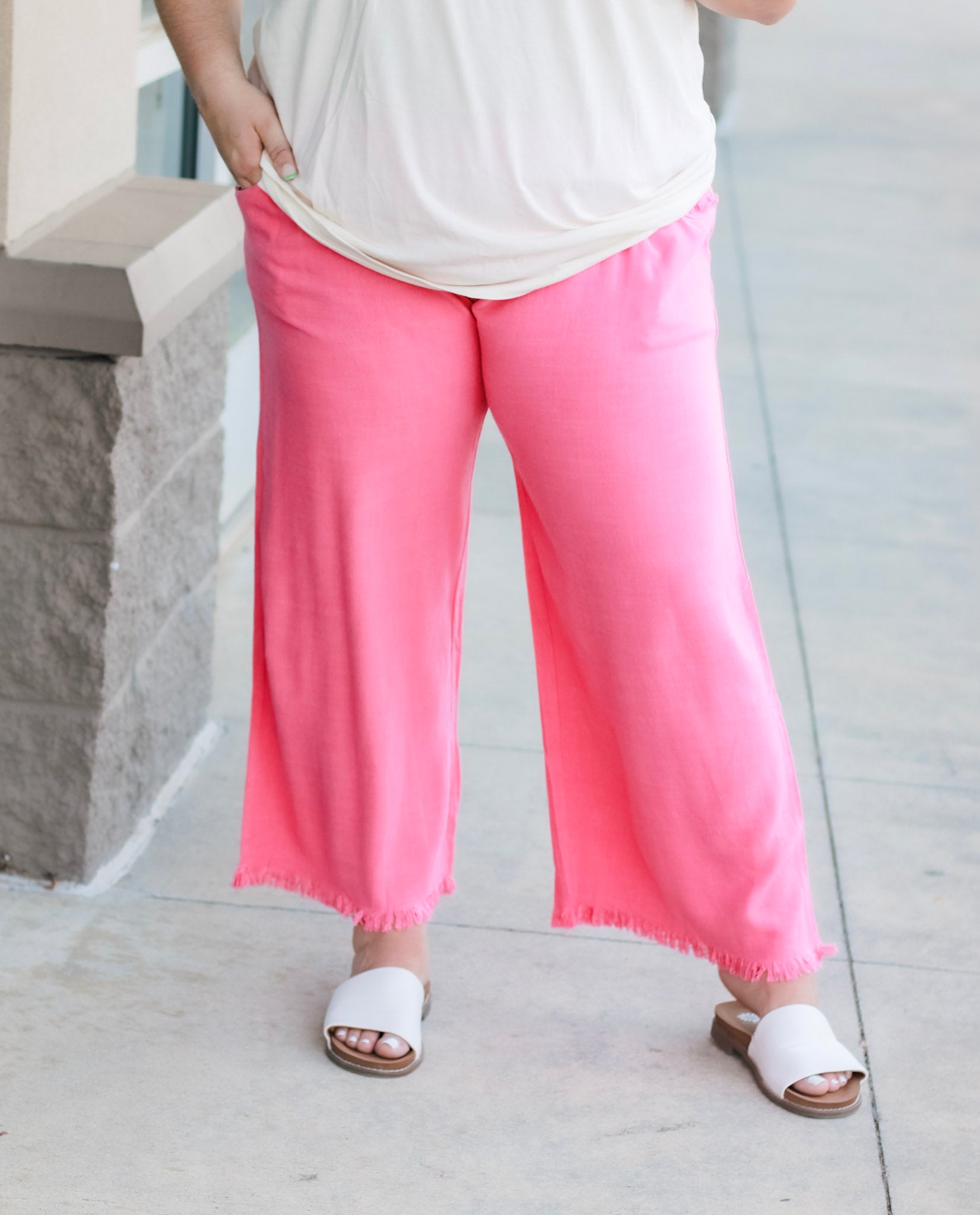 - Bubble gum pink linen blend pants