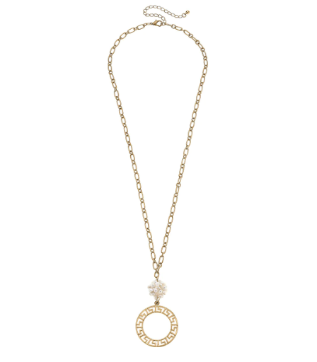 CANVAS Style Emery Green Keys Pendant & Pearl Cluster Necklace