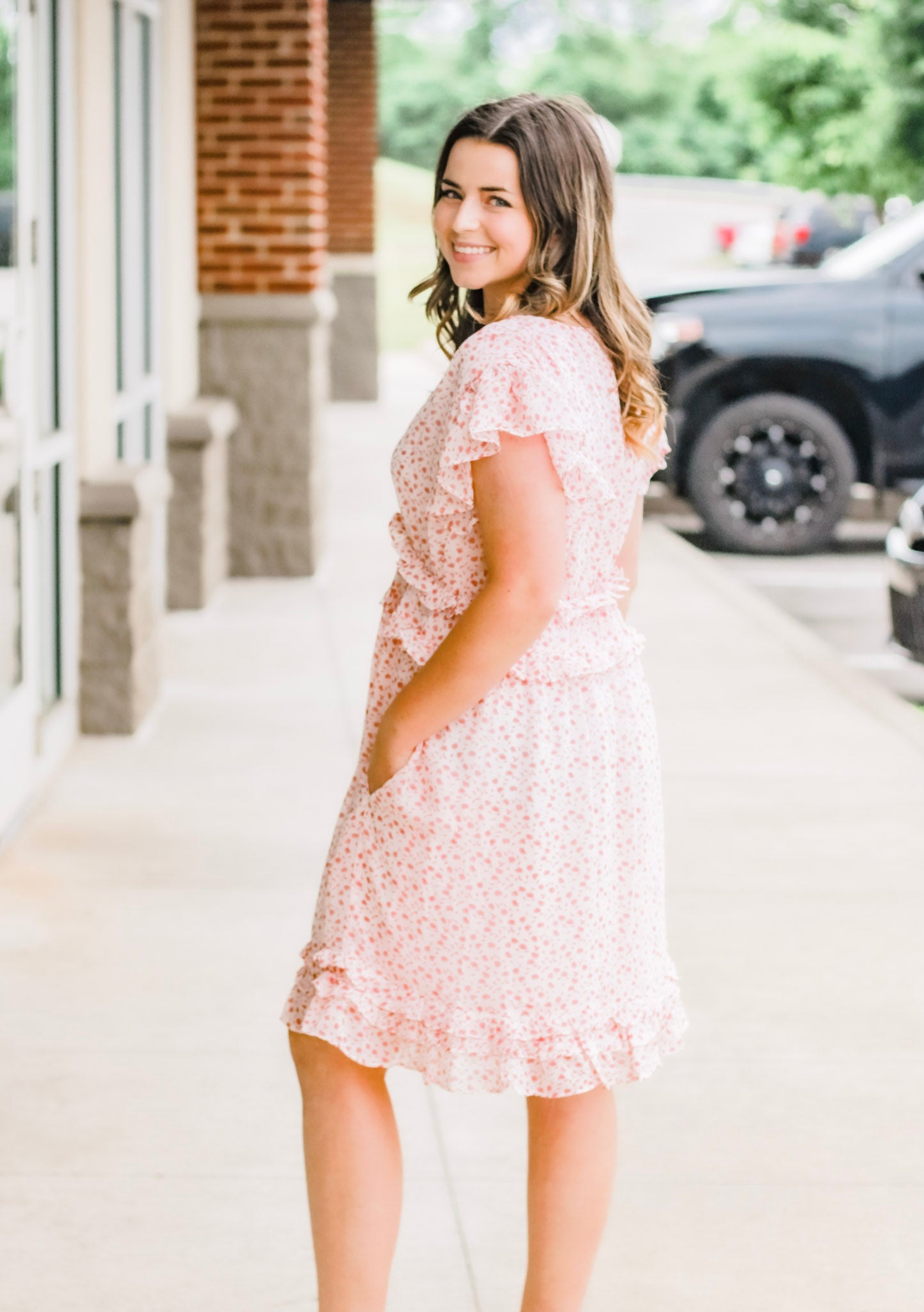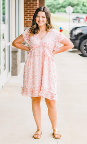 - Light pink floral dress