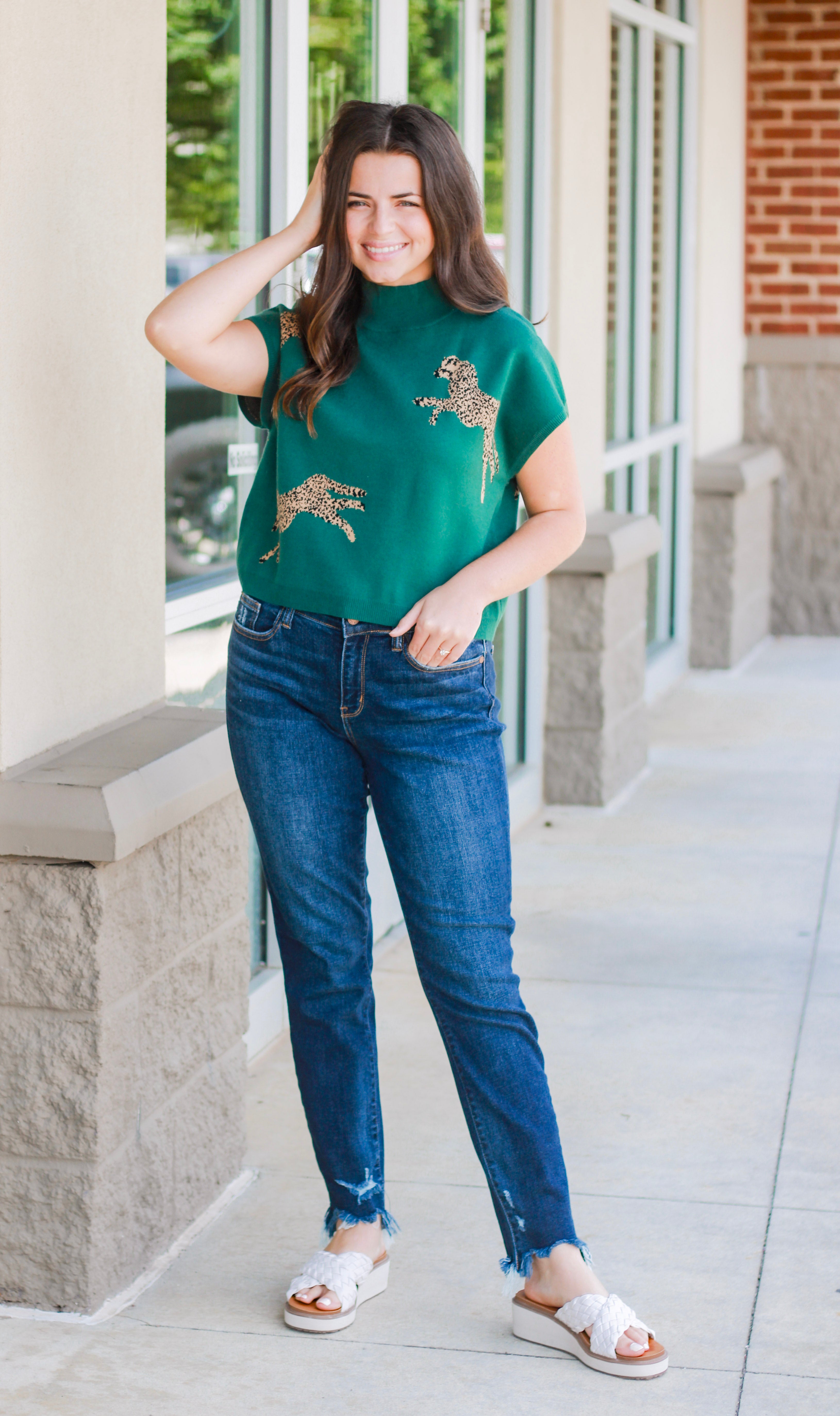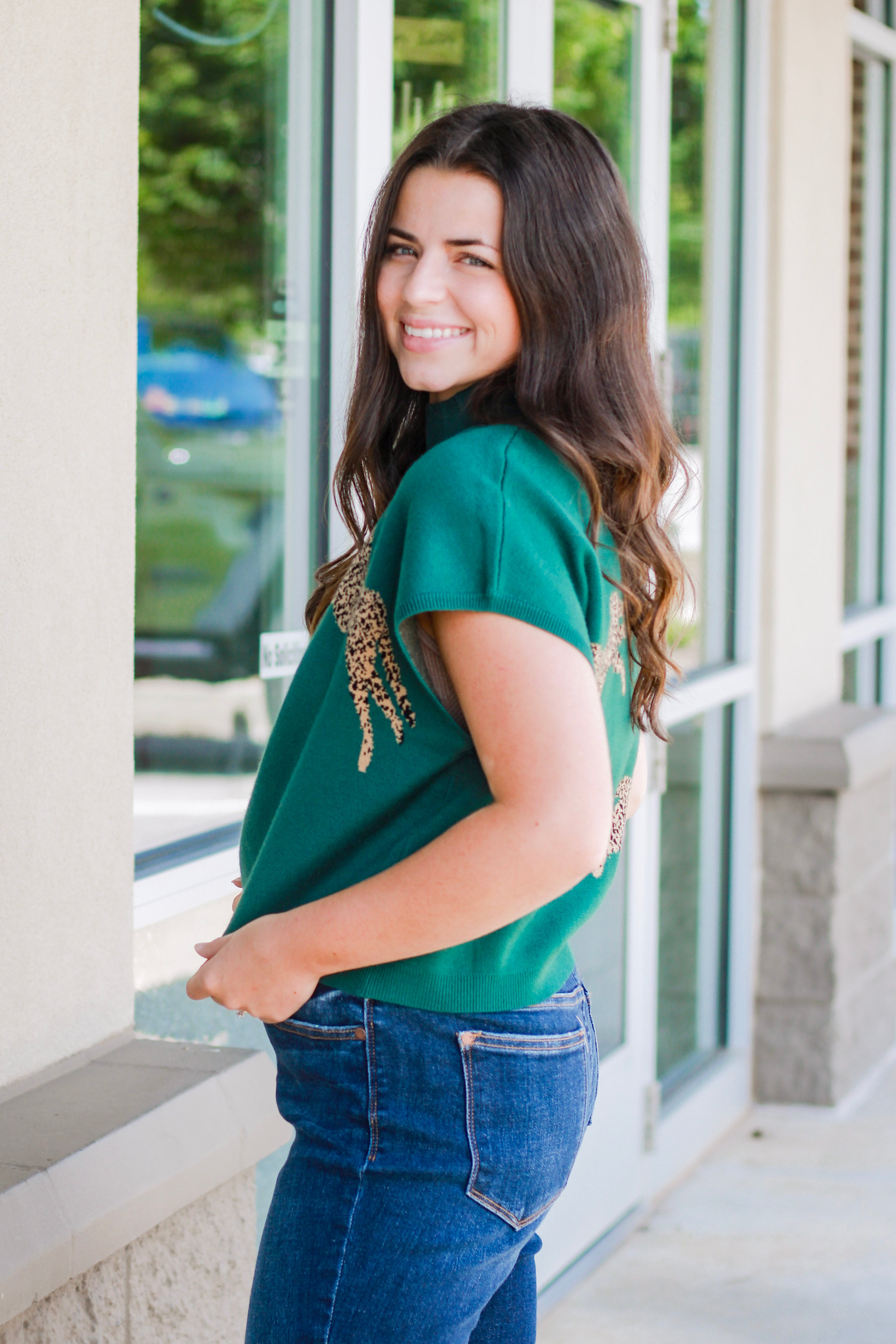 Make a Statement Cheetah Print Sweater in Hunter Green