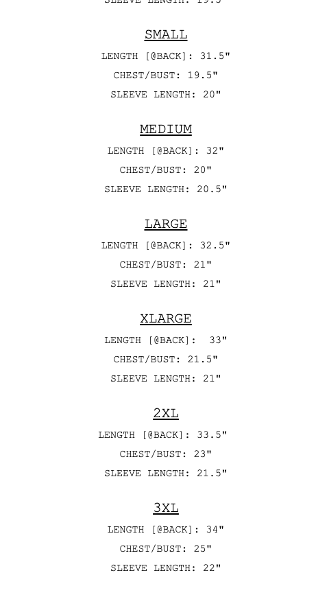 See size chart in images
