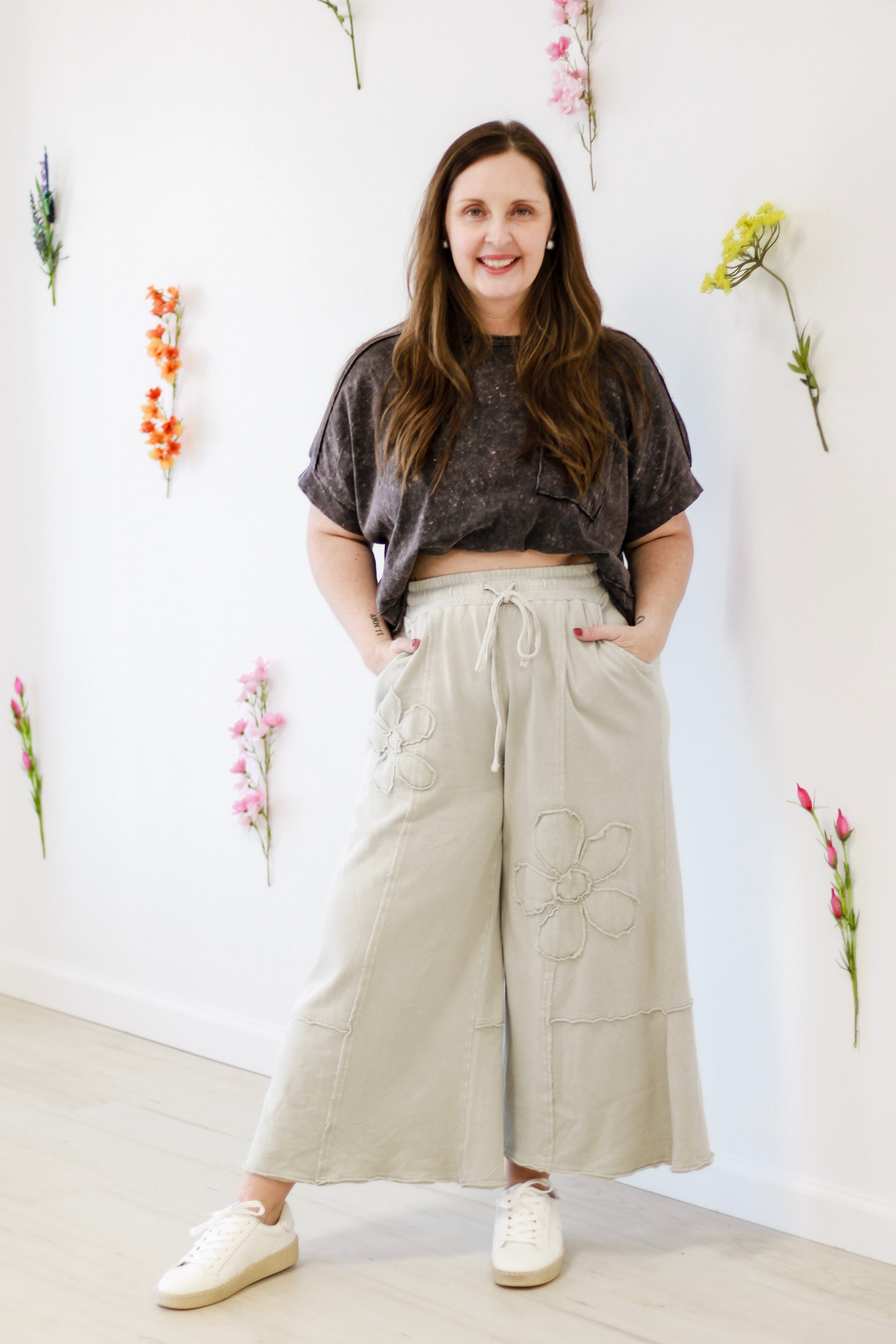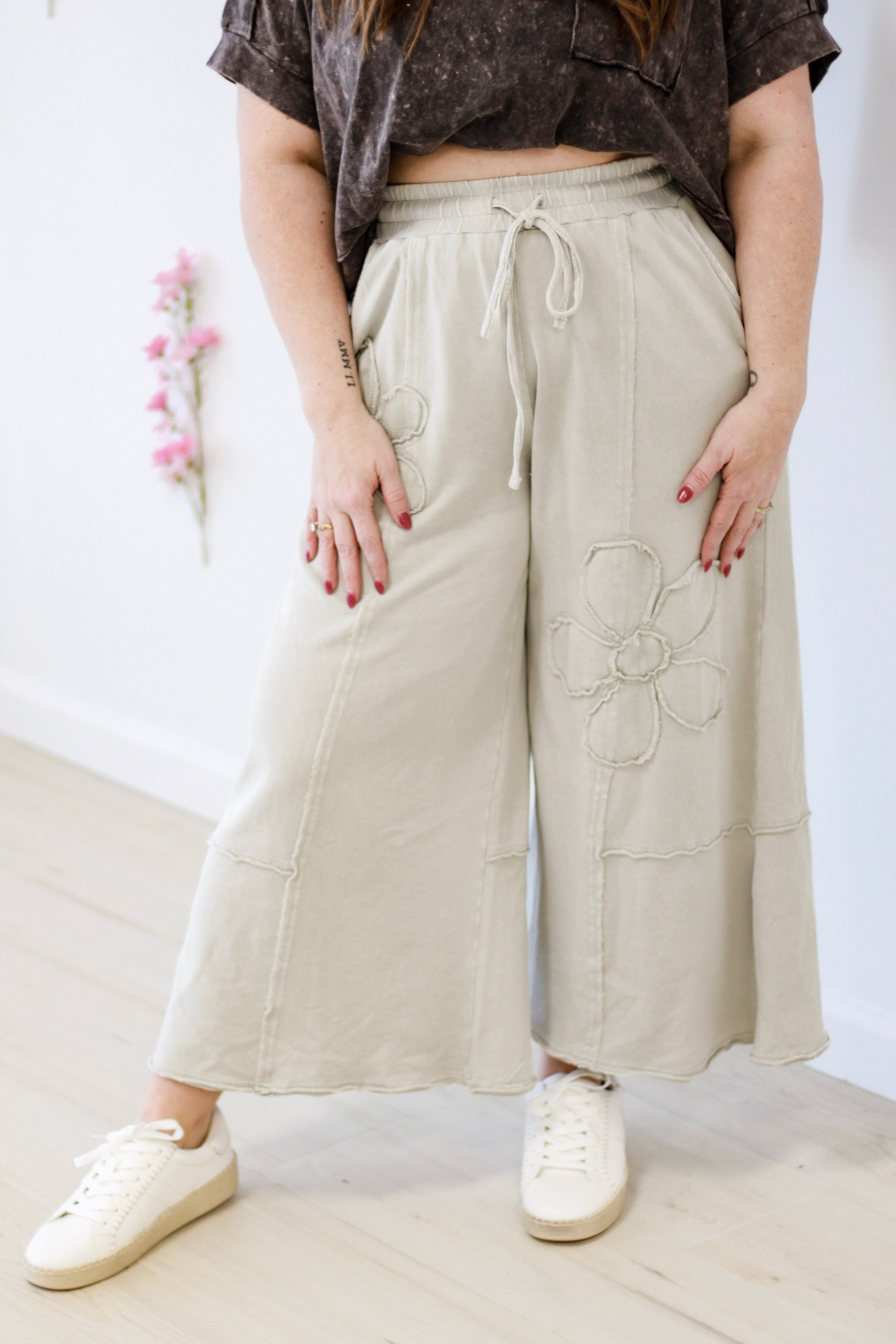 - Flower patch mineral washed terry knit pants