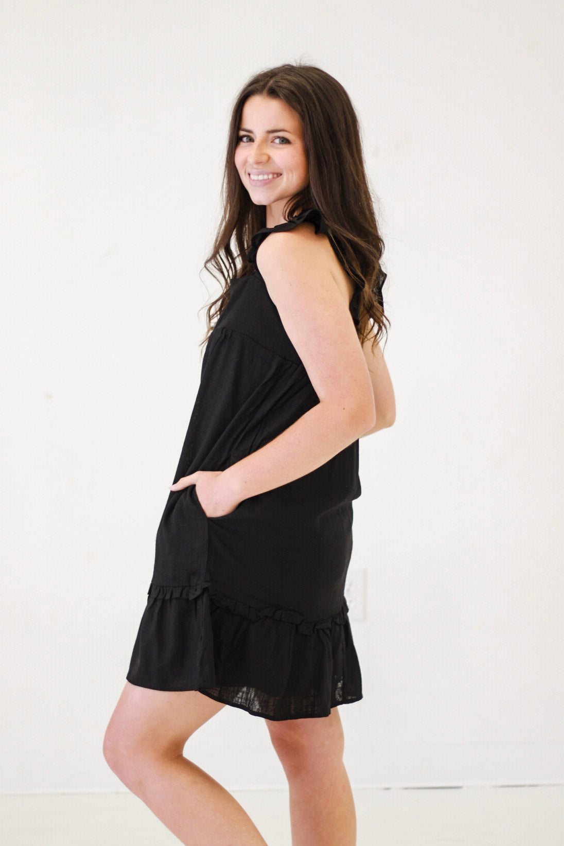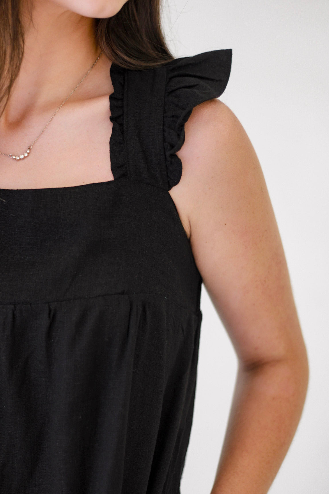 - Ruffled Solid Linen Backless Mini Dress