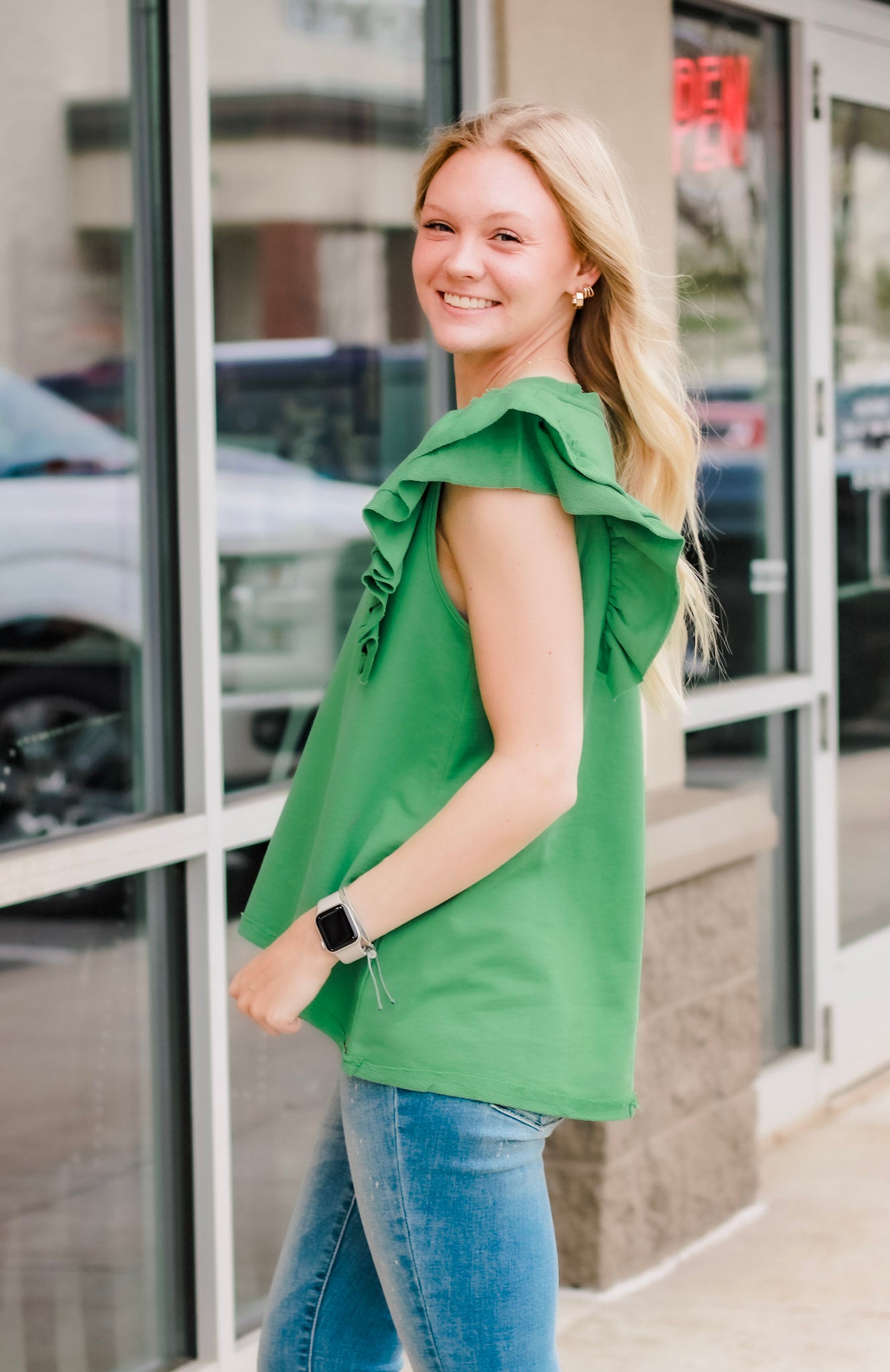 - Ruffle sleeves