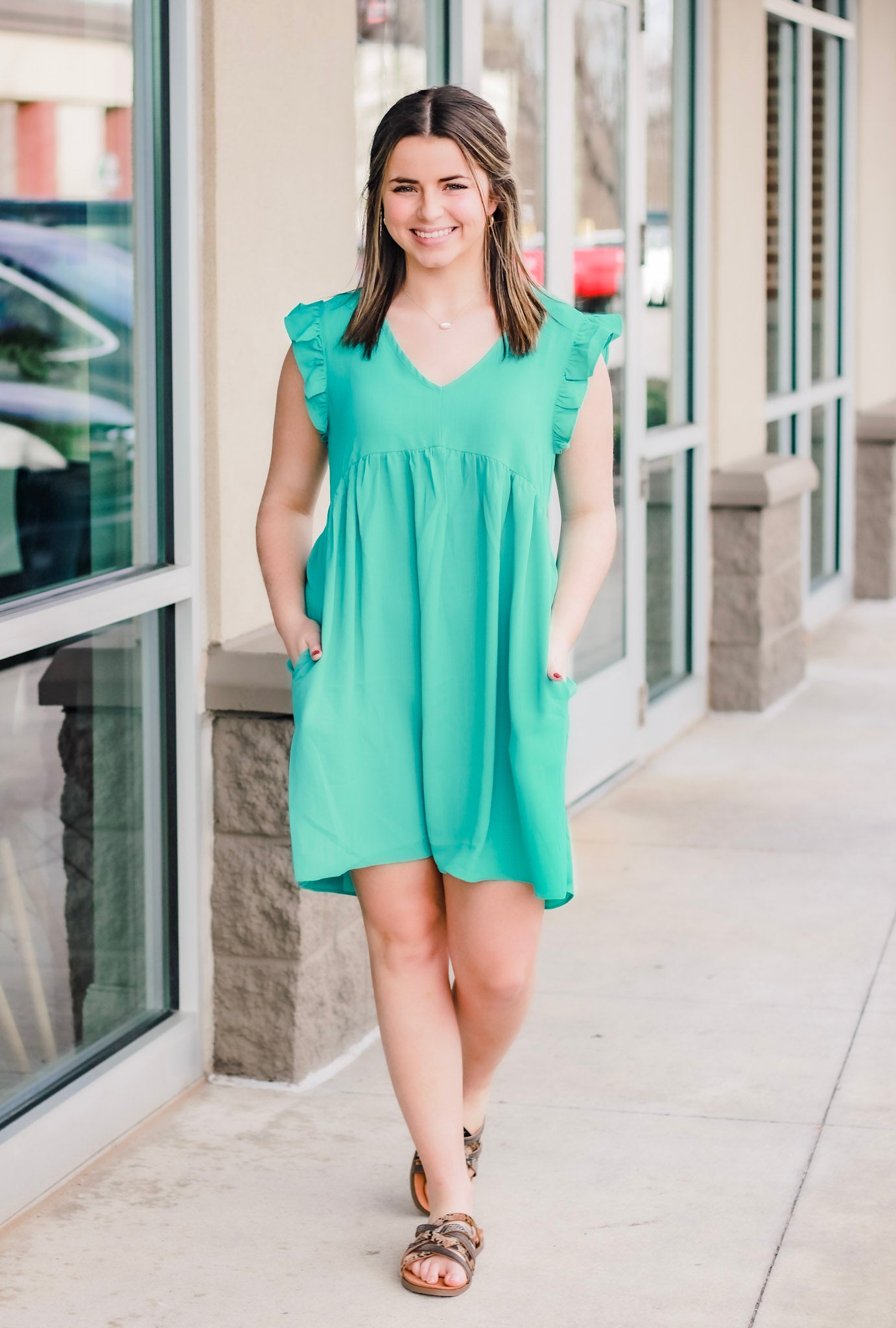 • Teal mini dress