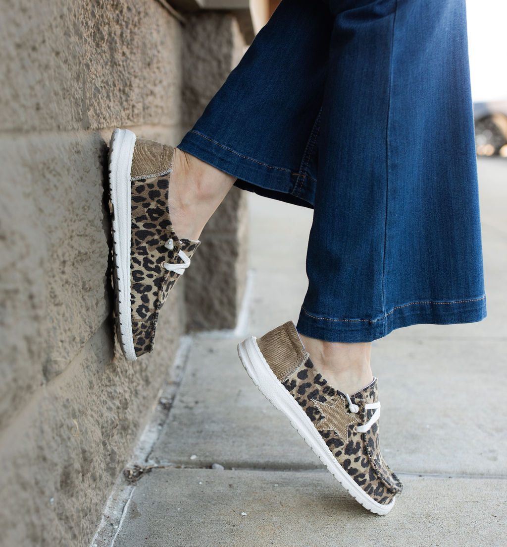 These shoes are comfortable, stylish and a store favorite. The tan heel and subtle star on the side make them adorable.